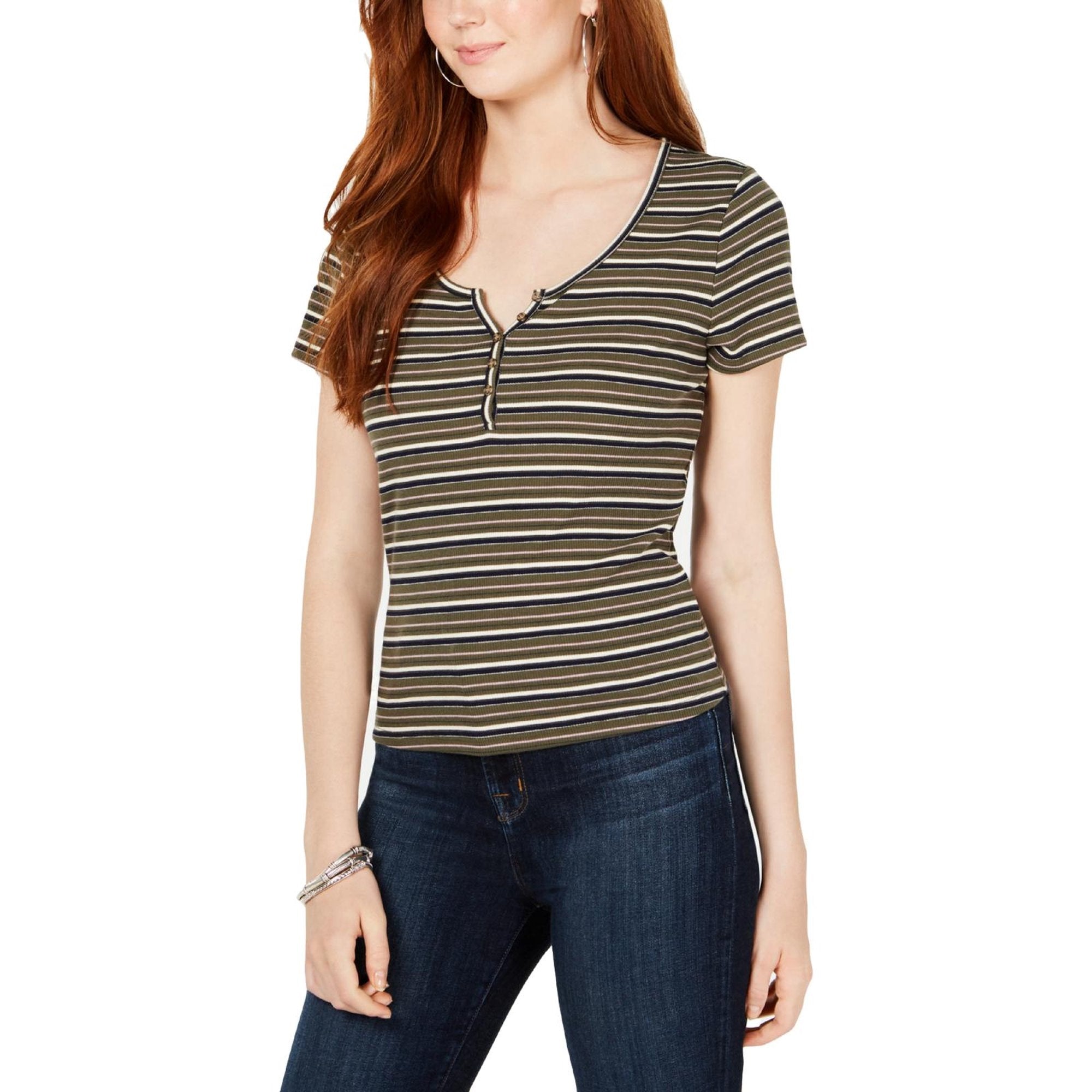 Fitted; hits at hip|Henley neckline with buttons|Rib knit|Runs small; we suggest sizing up for the perfect fit|Polyester/rayon/spandex
