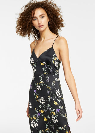 Hippie Rose Junior's V Neck Spaghetti Strap Midi Dress Black Size Large