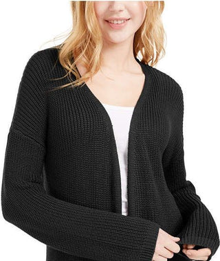 Hippie Rose Juniors' Back-Detail Long Cardigan Black Size Medium