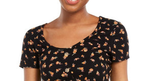Hippie Rose Junior's Floral Print Ribbed Blouse Black Size X-Large