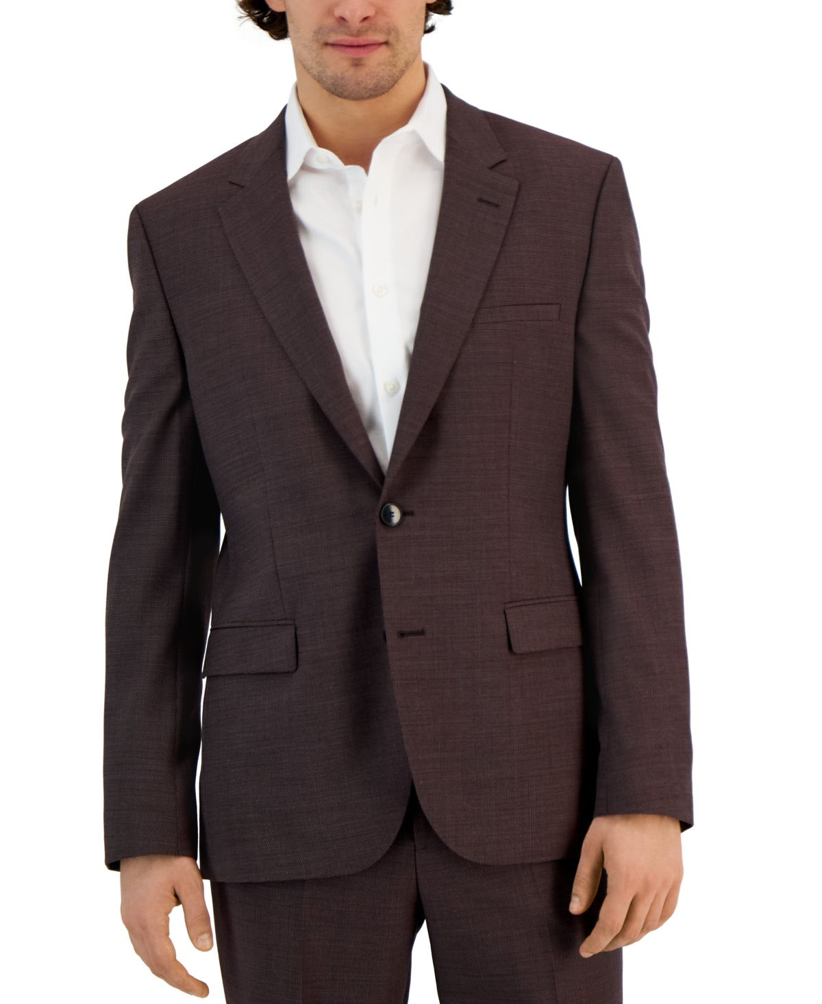 Modern-day formal style demands the ultimate in comfort| and this signature super-flex suit jacket from Hugo Boss is designed to help you stay elegant and loose at your next event. Pair it with matching super-flex pants.| Modern fit | Notched lapels| Button closure| Two buttons| Kissing buttons at the cuff