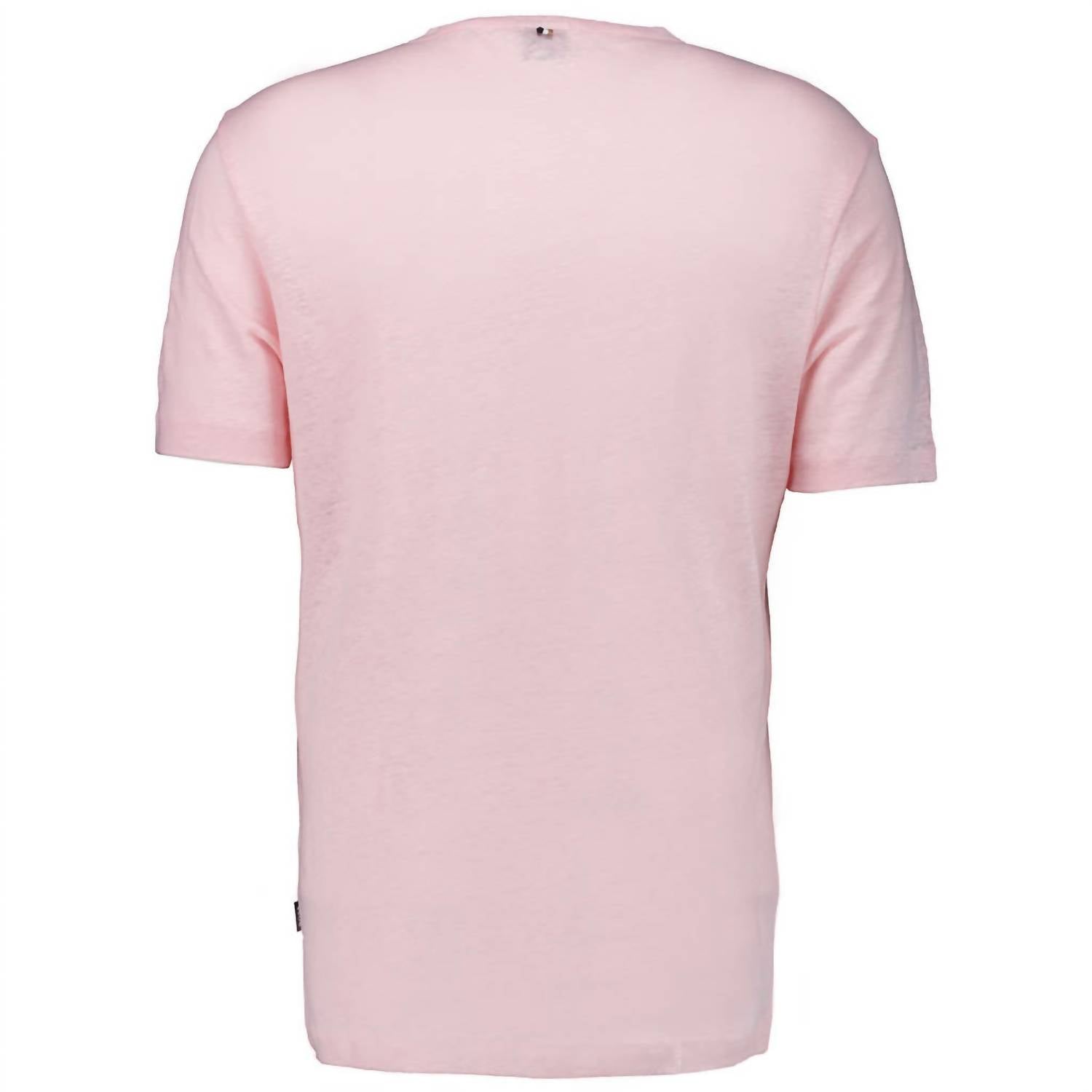 Experience the effortless comfort of the Hugo Boss Men's Tiburt T-shirt, crafted from breathable linen in a pastel pink hue. This imported, solid-patterned tee features short sleeves and a timeless crewneck design, making it a staple for casual elegance. The pull-on style ensures ease of wear, while its regular fit enhances any silhouette. For long-lasting quality, care is as simple as machine washing.
