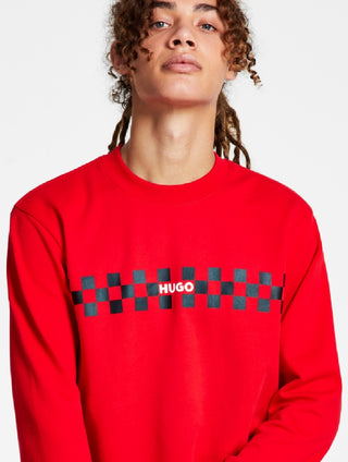 Hugo Boss Men's Dromeo Checkered Long Sleeve Sweatshirt Red Size XX-Large
