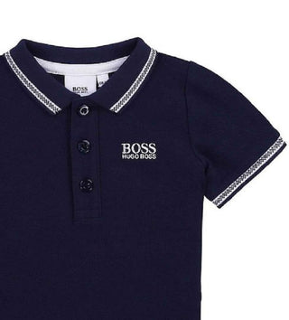 Hugo Boss Big Boy's Cotton Pique Logo Polo Shirt Blue Size 14
