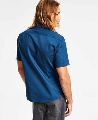 Hugo Boss Men's Slim Fit Tonal Embroidered Logo Button Down Shirt Blue Size Medium