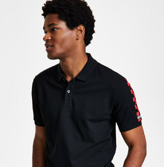 Hugo Boss Men's Dovember Classic Fit Checkered Logo Print Polo Shirt Black Size Medium