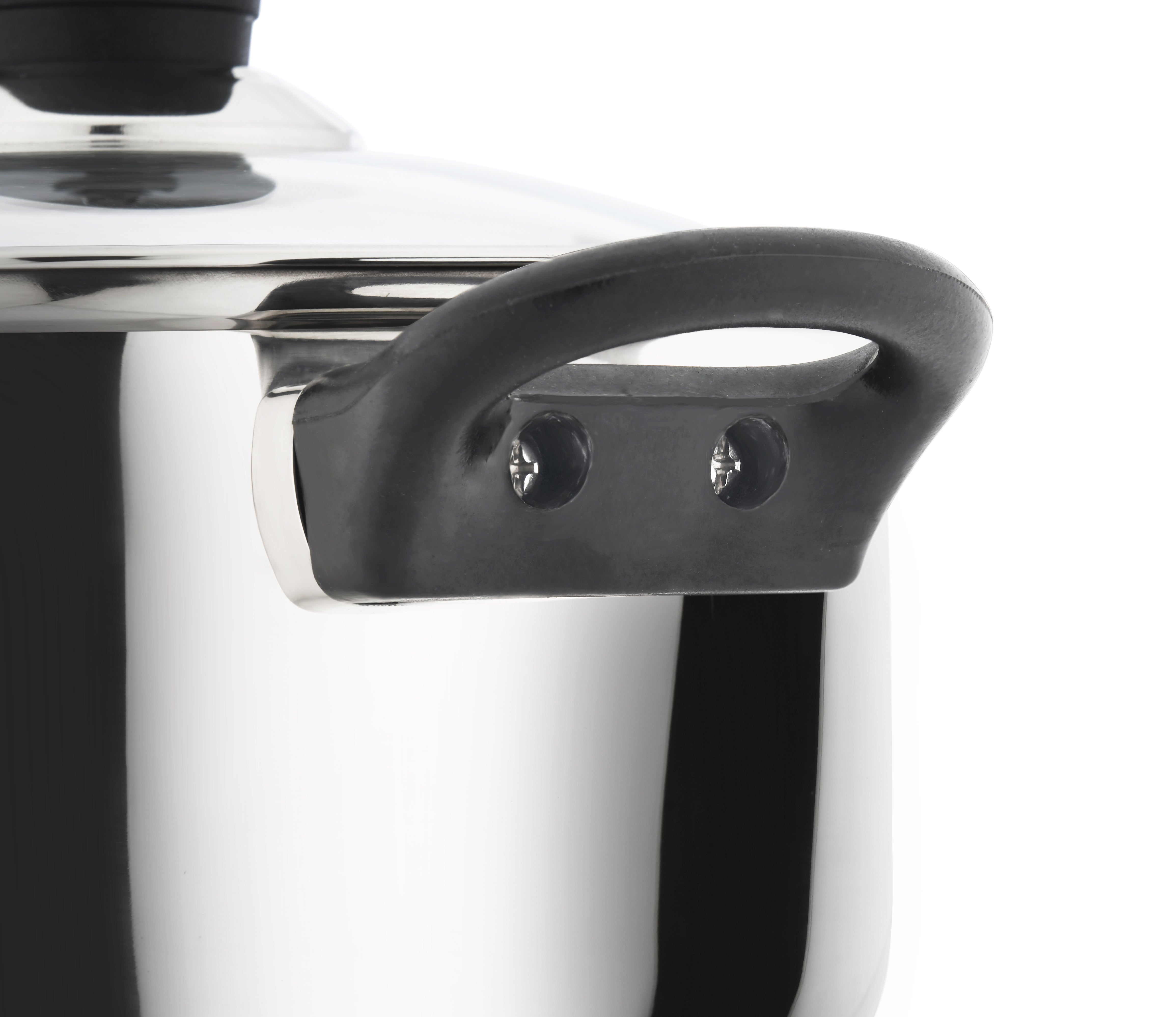 - Comfortable soft-touch handles stay cool during use, vented glass lids let steam escape