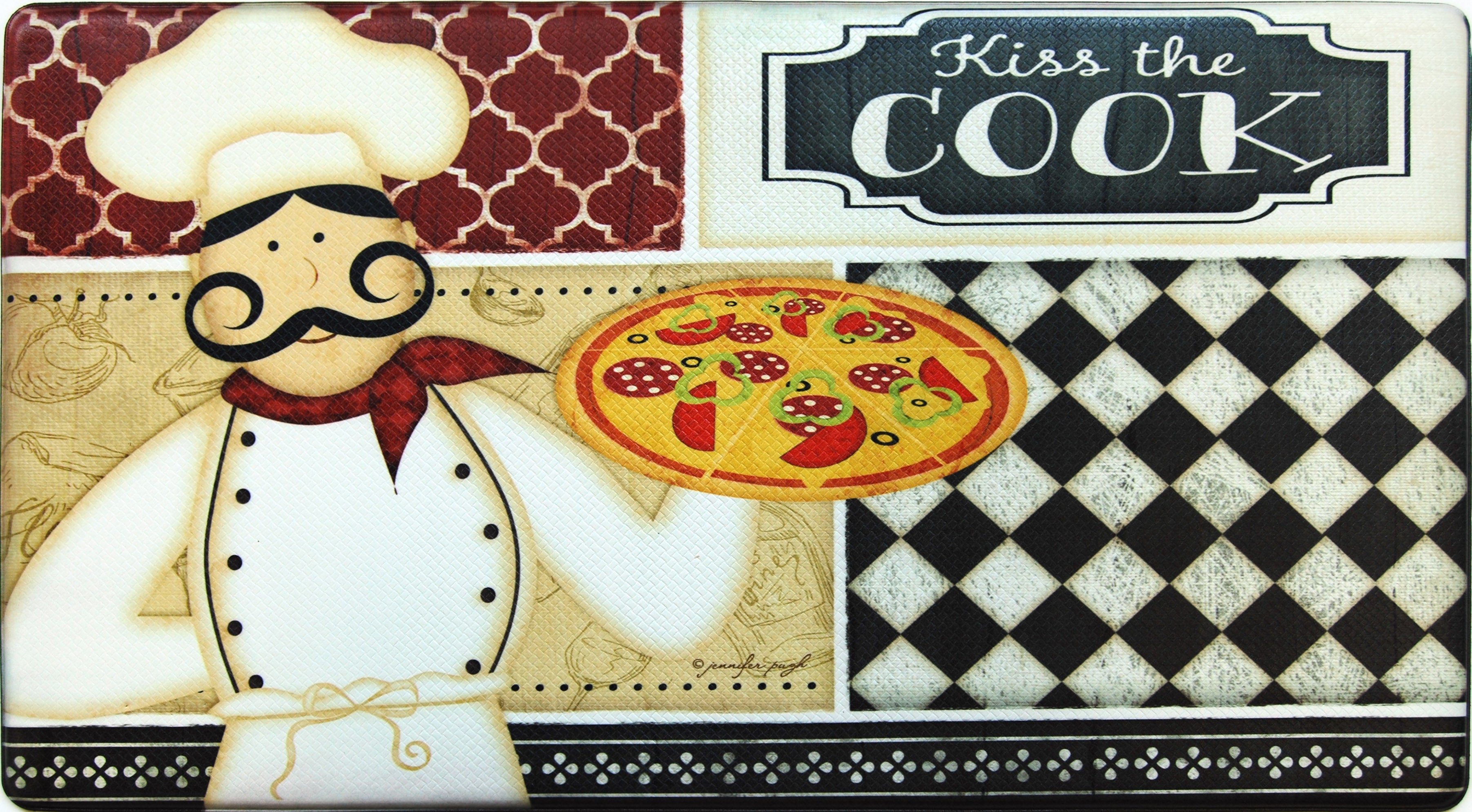 Oversized 20"x36" Feel at Ease Anti-Fatigue Kitchen Mat (Chalk Kiss the Cook)