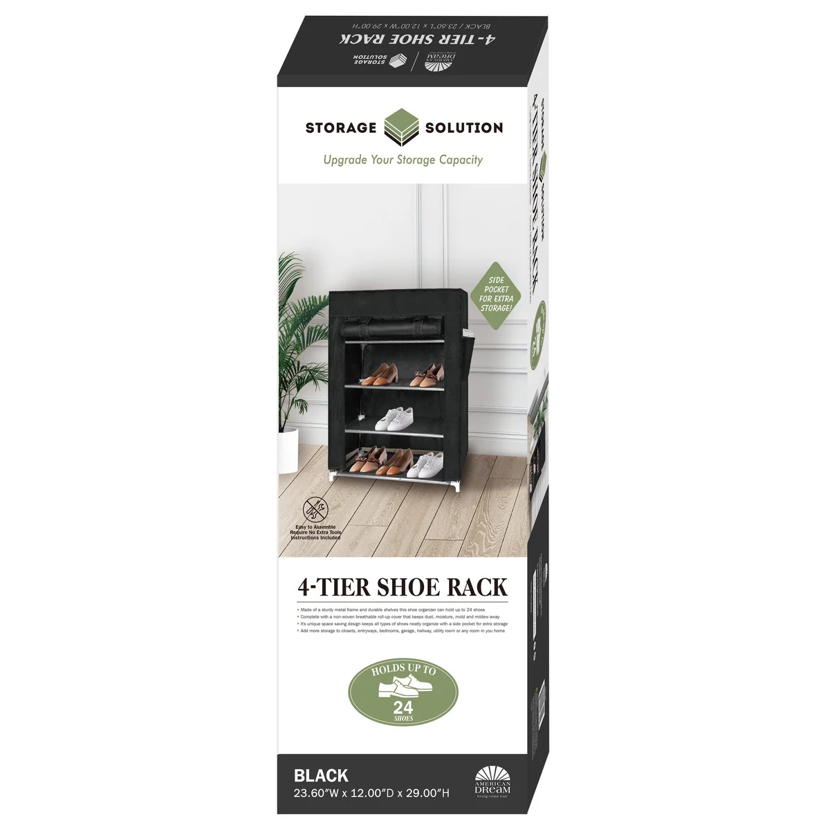 4 Tier Shoe Rack with Side Pocket Holds 24 Shoes