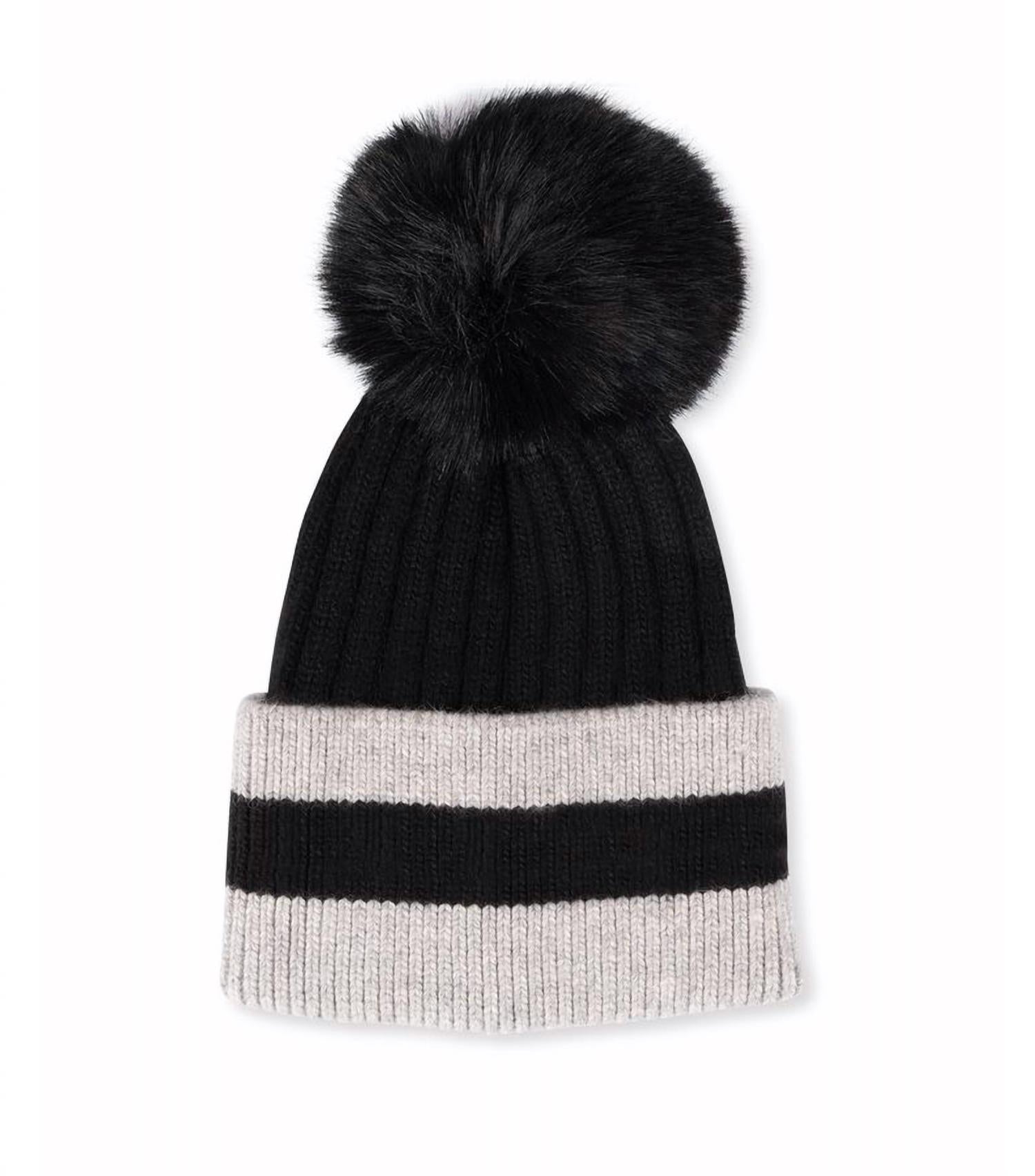 Featuring a faux fur pom detachable via snap