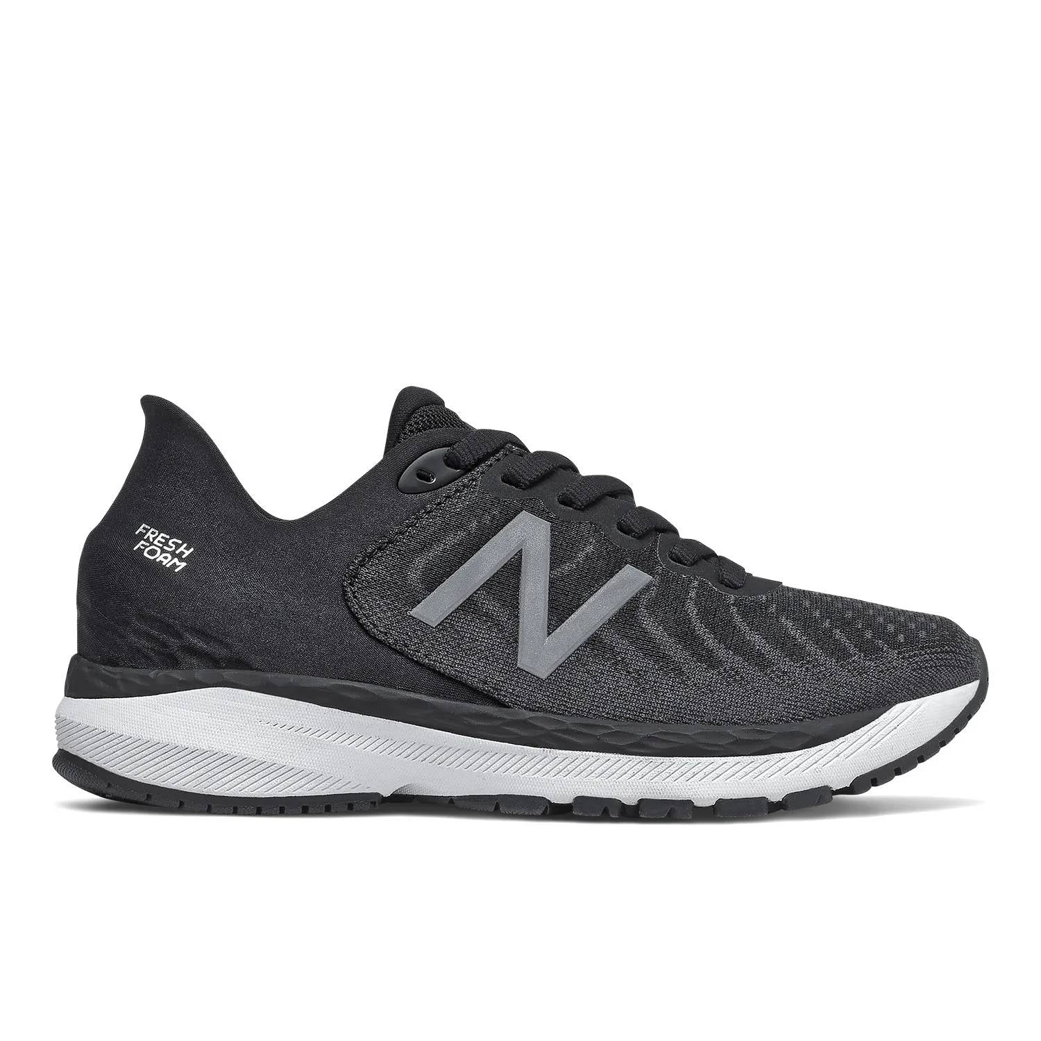The New Balance Kids Fresh Foam 860v11 Running Shoes are tailored for developing young athletes, offering outstanding support in a sleek black and white colorway. These sneakers boast a full-length Fresh Foam X midsole coupled with a supportive medial post for crucial stability and enduring underfoot comfort. The engineered mesh upper provides breathability and a lightweight fit and feel, perfect for active boys. With a round toe shape and medium shoe width, these shoes seamlessly combine performance and comfort, making them a solid choice for growing feet.