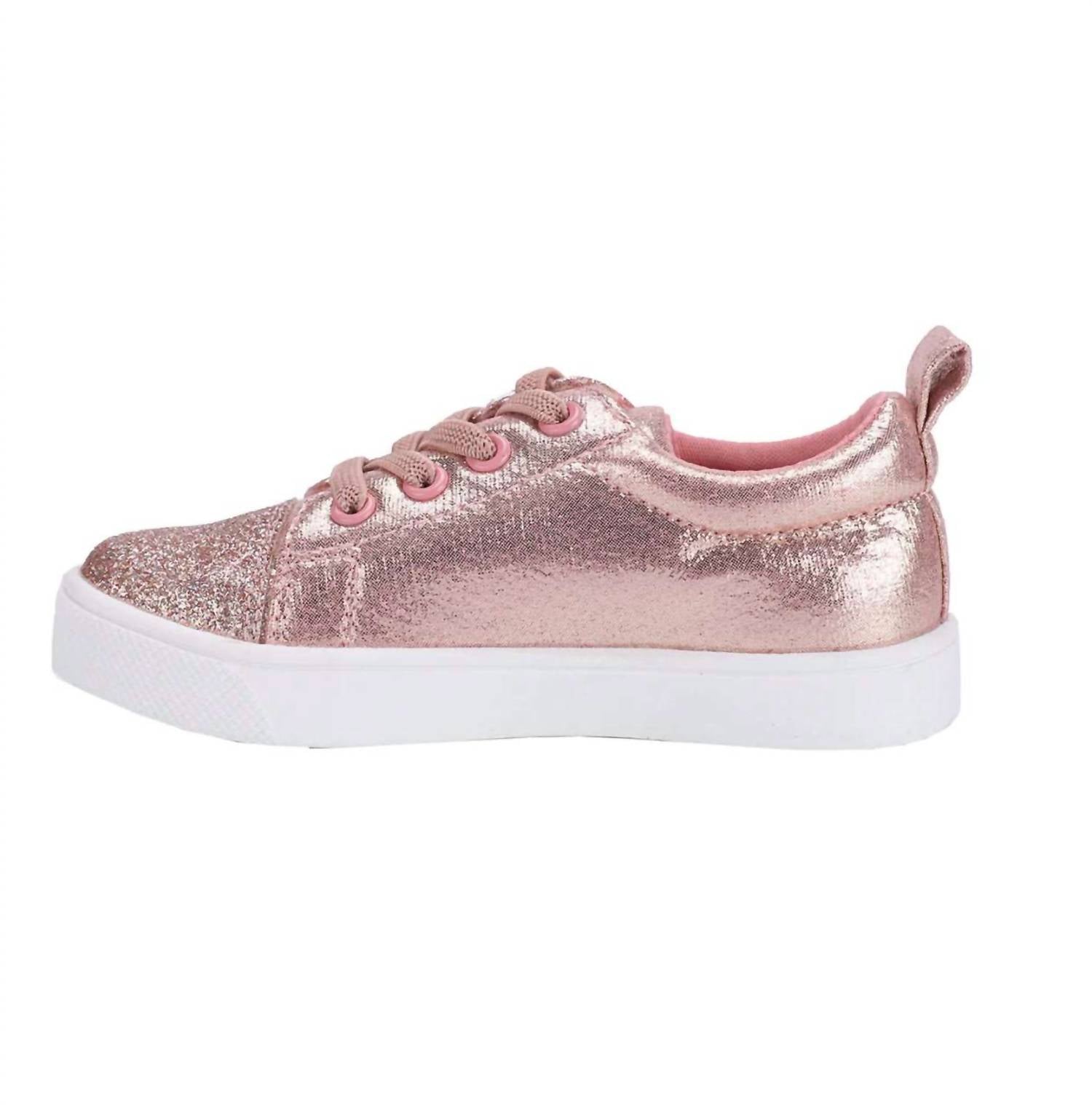 Glitter Upper. Mesh lining. Elastic lace. Foam cushion footbed with gel insert in heel for added comfort. OomphiesCup© premium outsole.