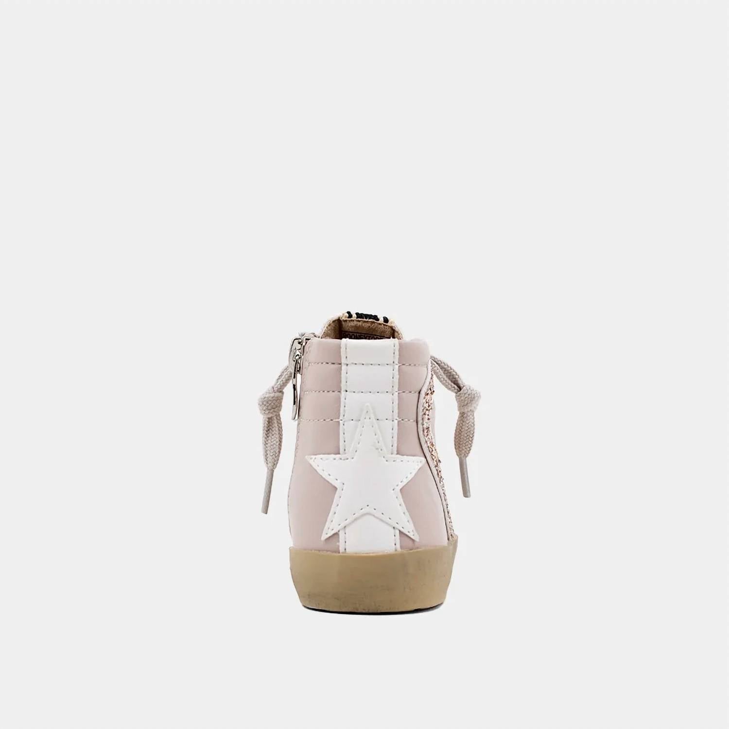 High-tops are designed to catch the eye with their playful yet chic appeal. Featuring a stunning, shining glittered faux leather and suede panel embellishments. Offer unmatched versatility and undeniable style. Elevate your kid's footwear with these cool kicks that fuse old-school charm with contemporary flair.