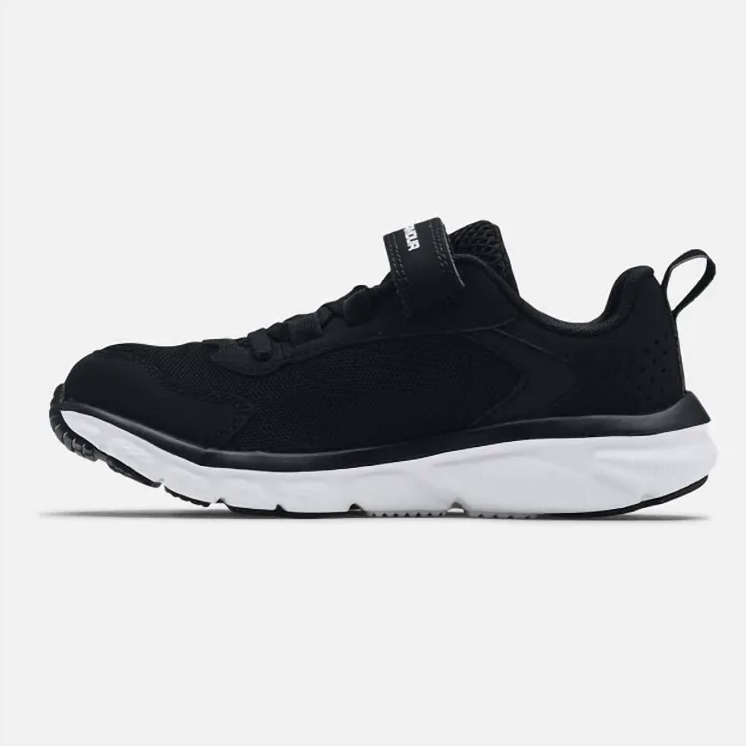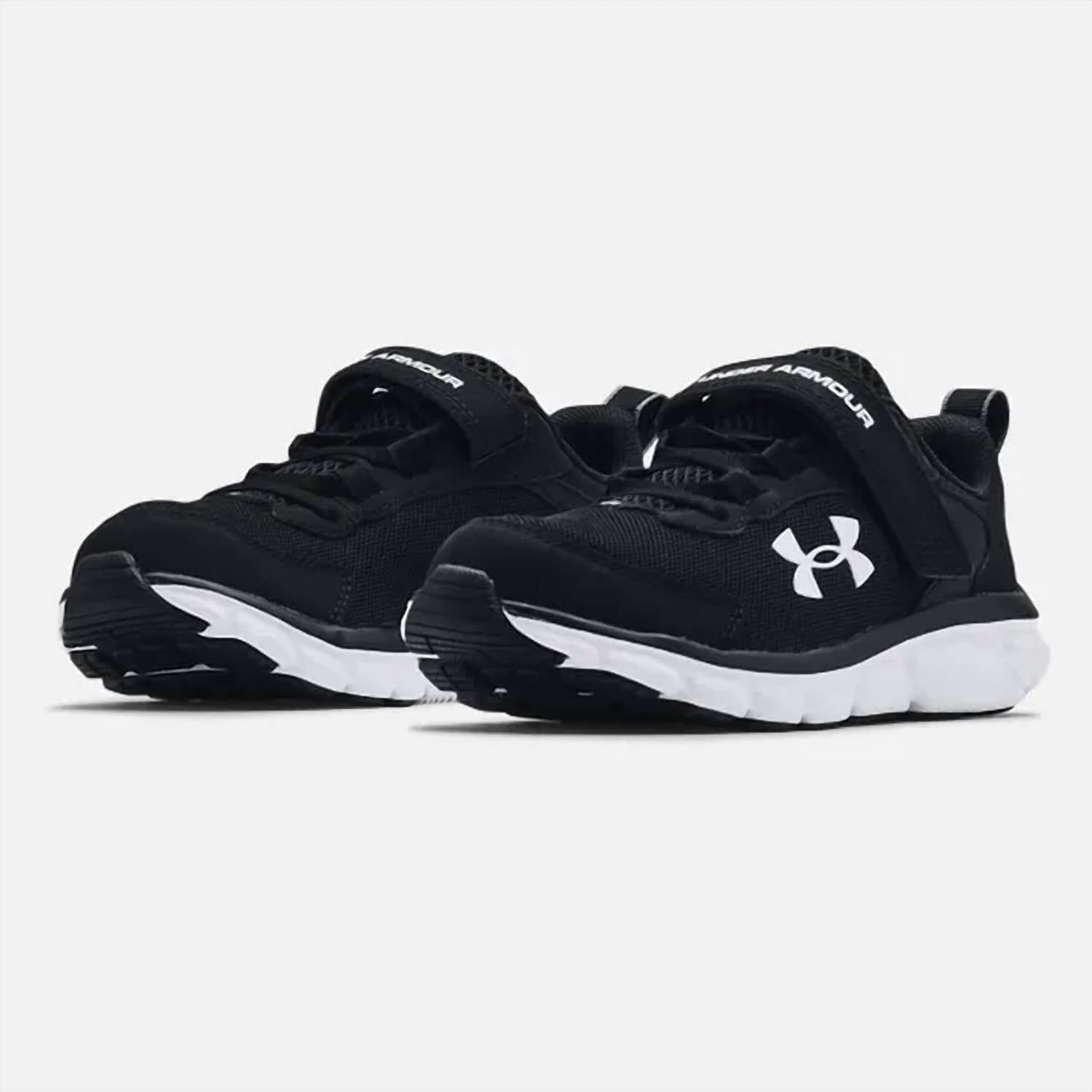 Introducing the Pre-school UA Assert 9 Sneakers by Under Armour, designed for little boys who love to stay active. These sneakers come in a stylish black and white colorway and feature a wide shoe width and a comfortable round toe shape, ensuring a perfect fit for growing feet. Ideal for little kids, these sneakers combine style and comfort for everyday adventures.
