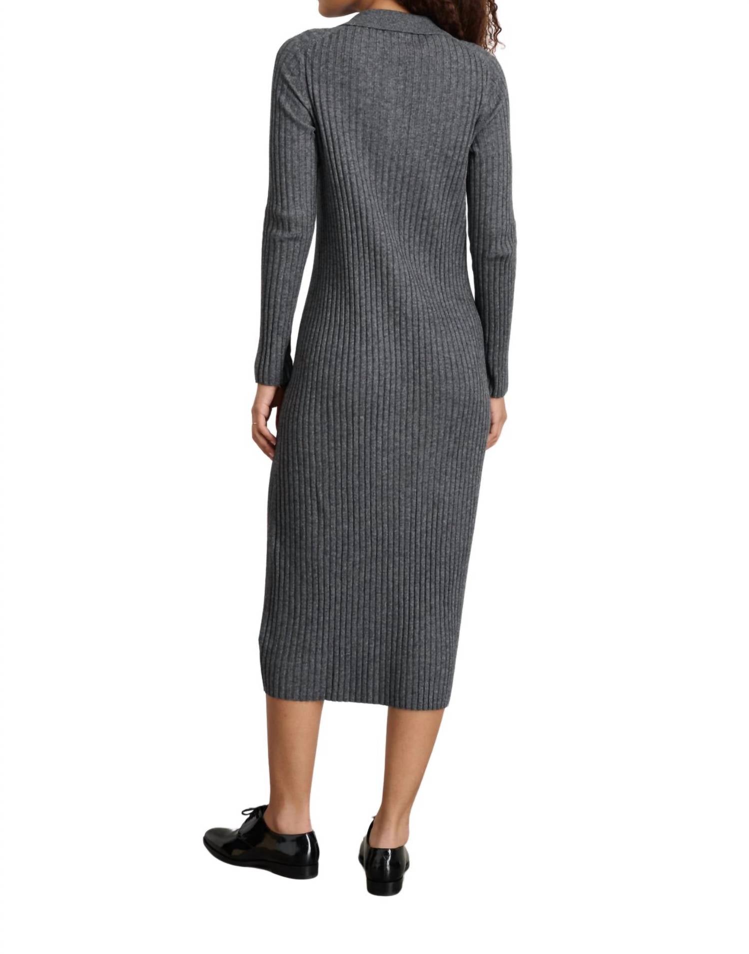 The perfect length dress does exist. Introducing the Alice Long Sleeve Rib Dress by ALEX MILL, a sophisticated choice in Medium Heather Grey. This dress showcases a shirt silhouette with a collar and a button closure, crafted from a luxurious blend of viscose, nylon, wool, cotton, and cashmere. Designed with a textured ribbed knit, it's perfect for adding warmth and style to your wardrobe. Care for this elegant piece by dry cleaning and laying flat to dry.