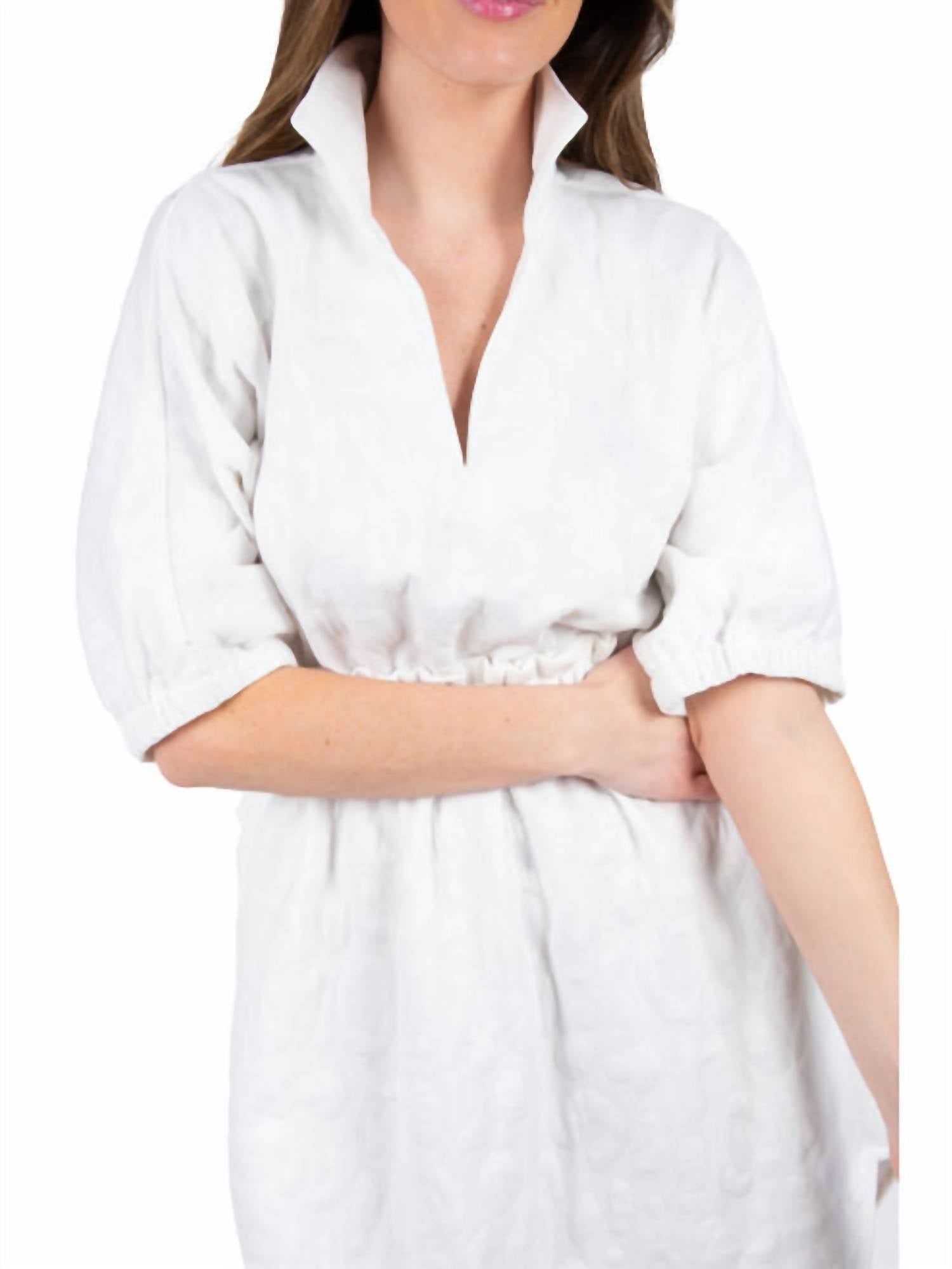 Introducing the Palmer Dress by Emily McCarthy in a stylish Cloud Cheetah design. This women's mini dress features elbow-length loose elastic dolman sleeves and is crafted from a luxurious 98% polyester and 2% spandex jacquard fabric. It boasts a flattering fitted elastic waist with a ruffle cinched detail, a shirt tail hemline, and practical side slit pockets. Care is simple with a delicate cycle wash in cold water and line dry to maintain its vibrant texture.