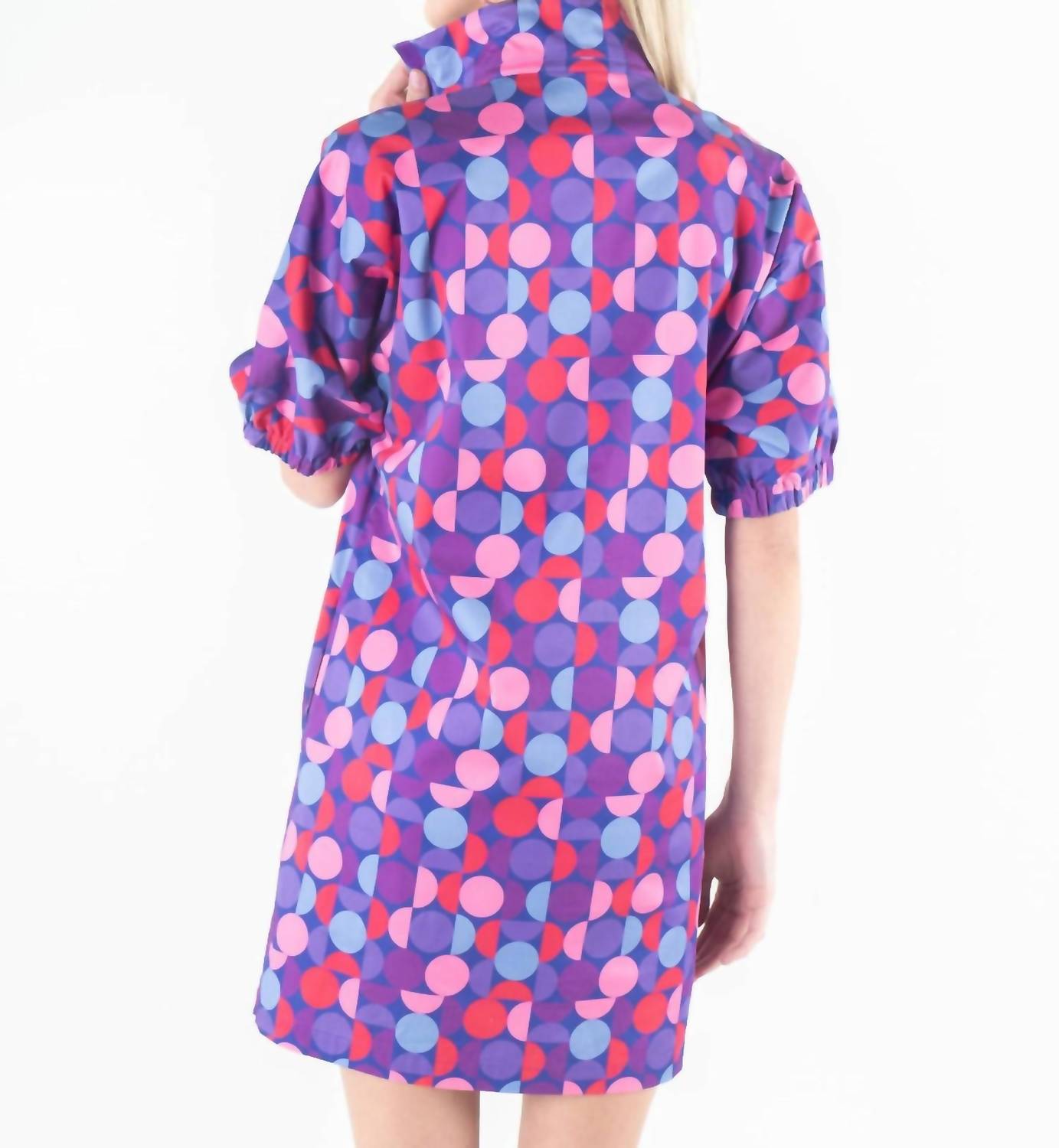 The kind of easy and flattering dress you'll be reaching for all season long. Featuring a loose-fitting body, optional stand up collar, and loose elastic dolman sleeves. The Bauhaus print radiates a retro chic touch to this staple style. Featuring a playful trimmed neckline with contrasting polka dots. It has side pockets. 100% Cotton. Delicate cycle wash with gentle liquid or powder detergent. Hang dry. Made in China.