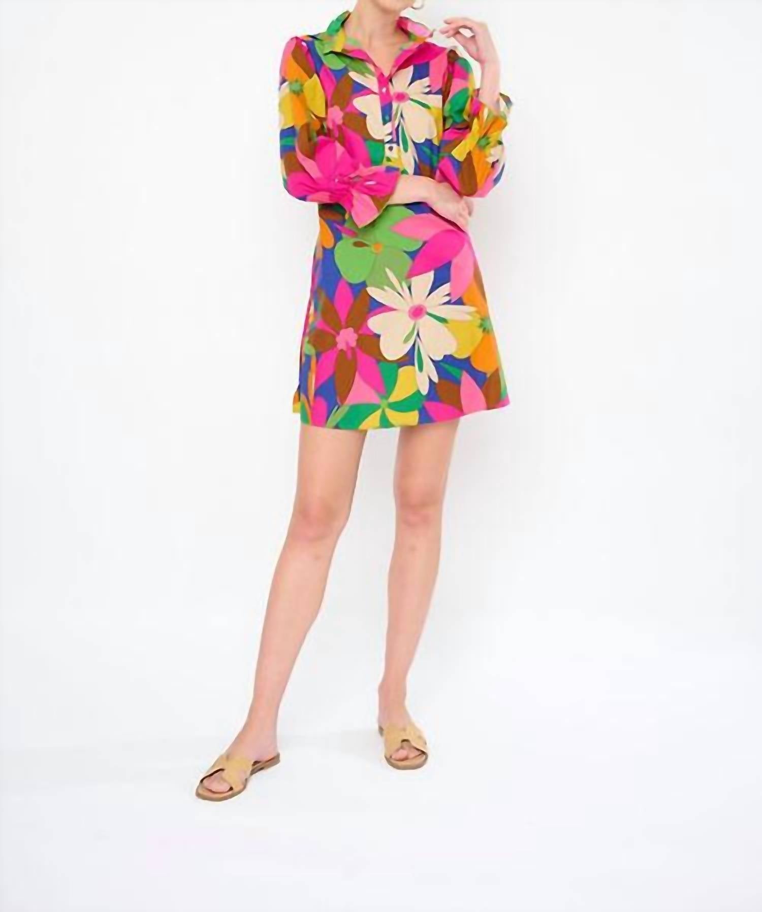 A short and breezy dress for those warmer days. Introducing the Adelina Button Front Dress by Flora Bea, a stylish workwear piece perfect for any holiday party. This mini dress, crafted from 100% cotton, features a floral windmill pattern and has a chic shirt silhouette with a collar. It boasts three-quarter sleeves and a button closure for a classic touch. For best care, hand wash and line dry.