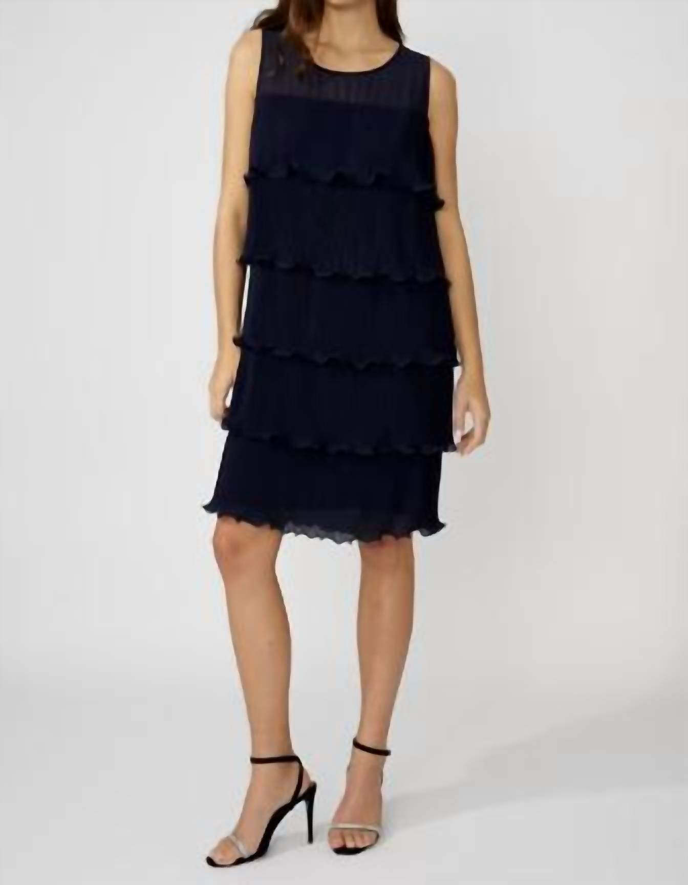 The kind of easy and flattering dress you'll be reaching for all season long. This knee-length A-line dress offers a comfortable yet stylish option with its round neckline and sleeveless cut, suitable for both casual and dressier events. Accented with subtle ruffles and pleats, its clean design highlights classic feminine charm. Made from lightweight polyester, it’s unlined and designed without pockets or a zipper for a relaxed, effortless wear.