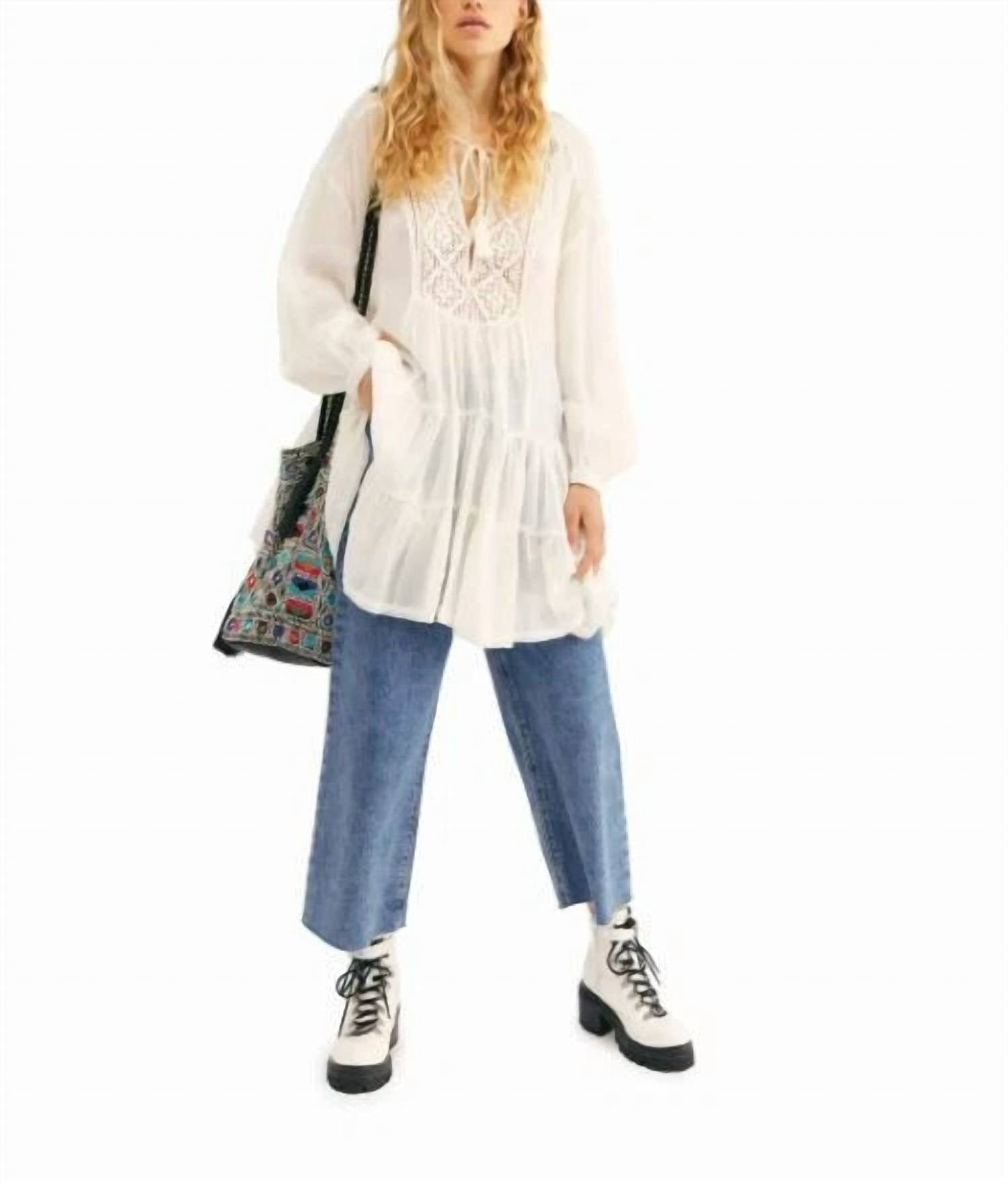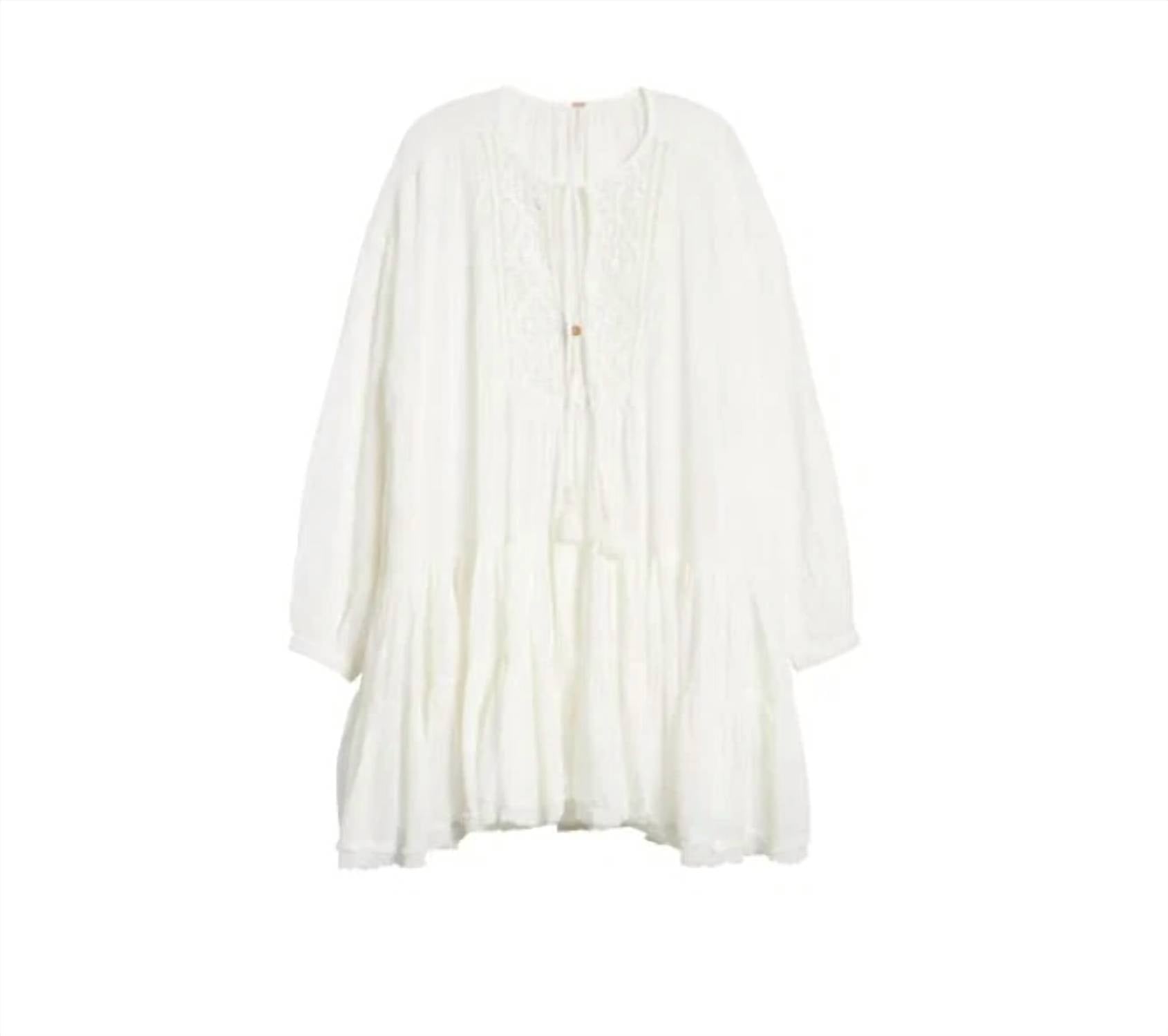 The kind of easy and flattering dress you'll be reaching for all season long. Something Special Crochet Mini Dress From the Endless Summer collection, this breezy cotton minidress is for fun in the warm sun with its flowy, tiered design and openwork lace bodice Fit: this style runs large, order one size down Split neck Long blouson sleeves Tiered skirt Embroidered bib design Woven Machine Wash Cold Length 32"