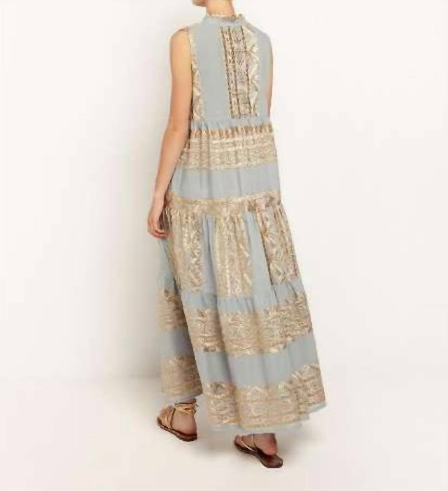 A maxi dress that is just as cute as it is comfortable. Experience the elegant style and comfort of the Ava Sleeveless Maxi Dress by Greek Archaic Kori. Crafted in Greece, this dress is made from 100% cotton featuring old textured stitching that adds a unique edge. Its maxi length and sleeveless, V-neck design create a sleek, sophisticated look suitable for any occasion. With a pull-on closure, this patterned A-line silhouette embodies quiet luxury, perfect for summer dinner parties or Mother’s Day celebrations.