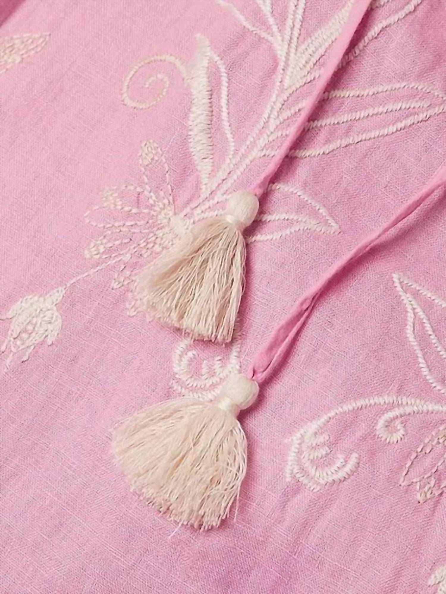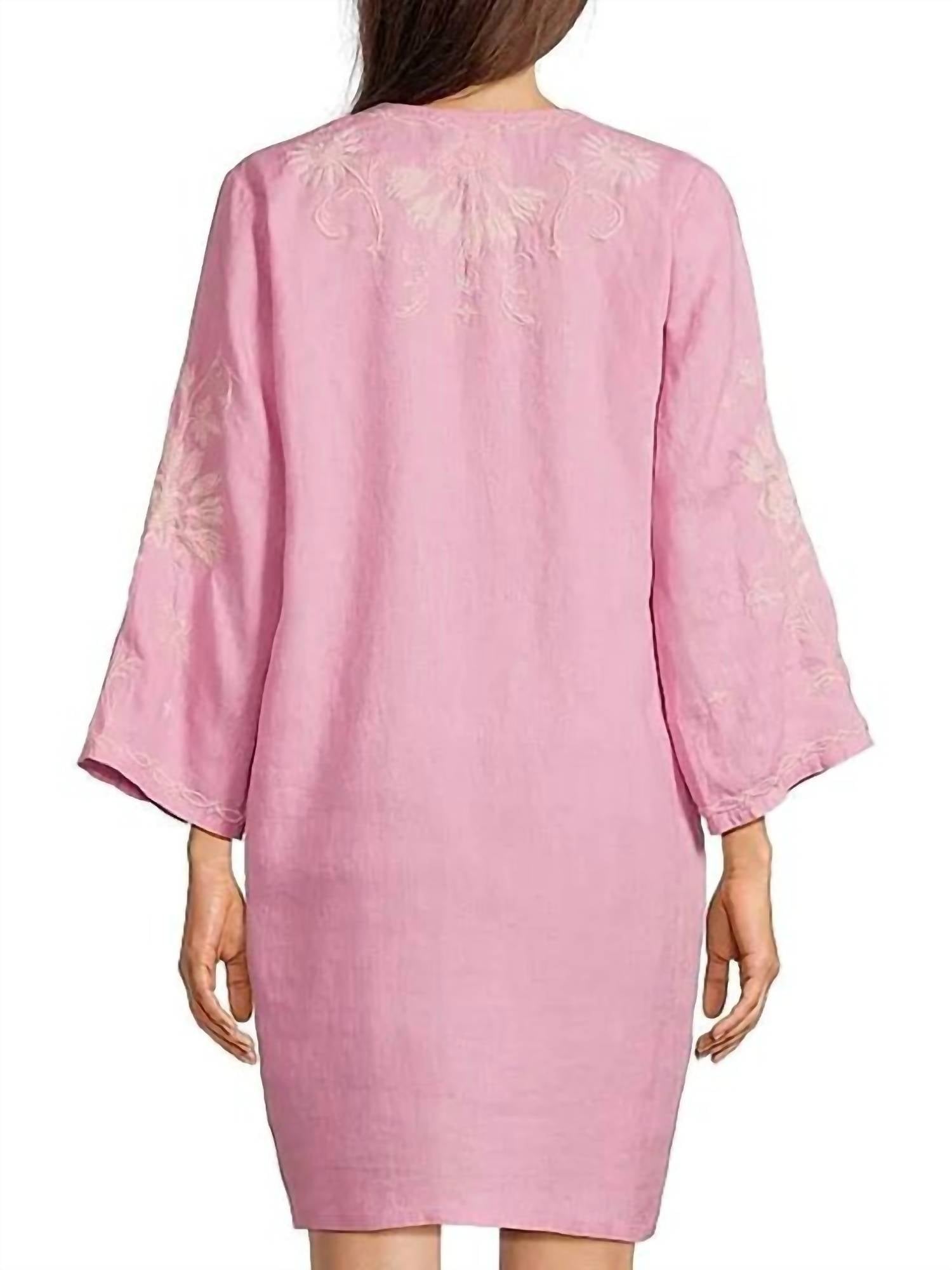 Comfortable and cute, this casual day dress has it all. The Danika Kimono Sleeve Relaxed Dress is made from 100% breathable linen, making it ideal for warm days. It features a split V-neckline adorned with decorative tassels, providing a relaxed and comfortable fit. The dress is finished with intricate embroidered detailing, giving it a charming appearance. Pair it with sandals and a coordinating crossbody bag for an effortless vacation outfit.