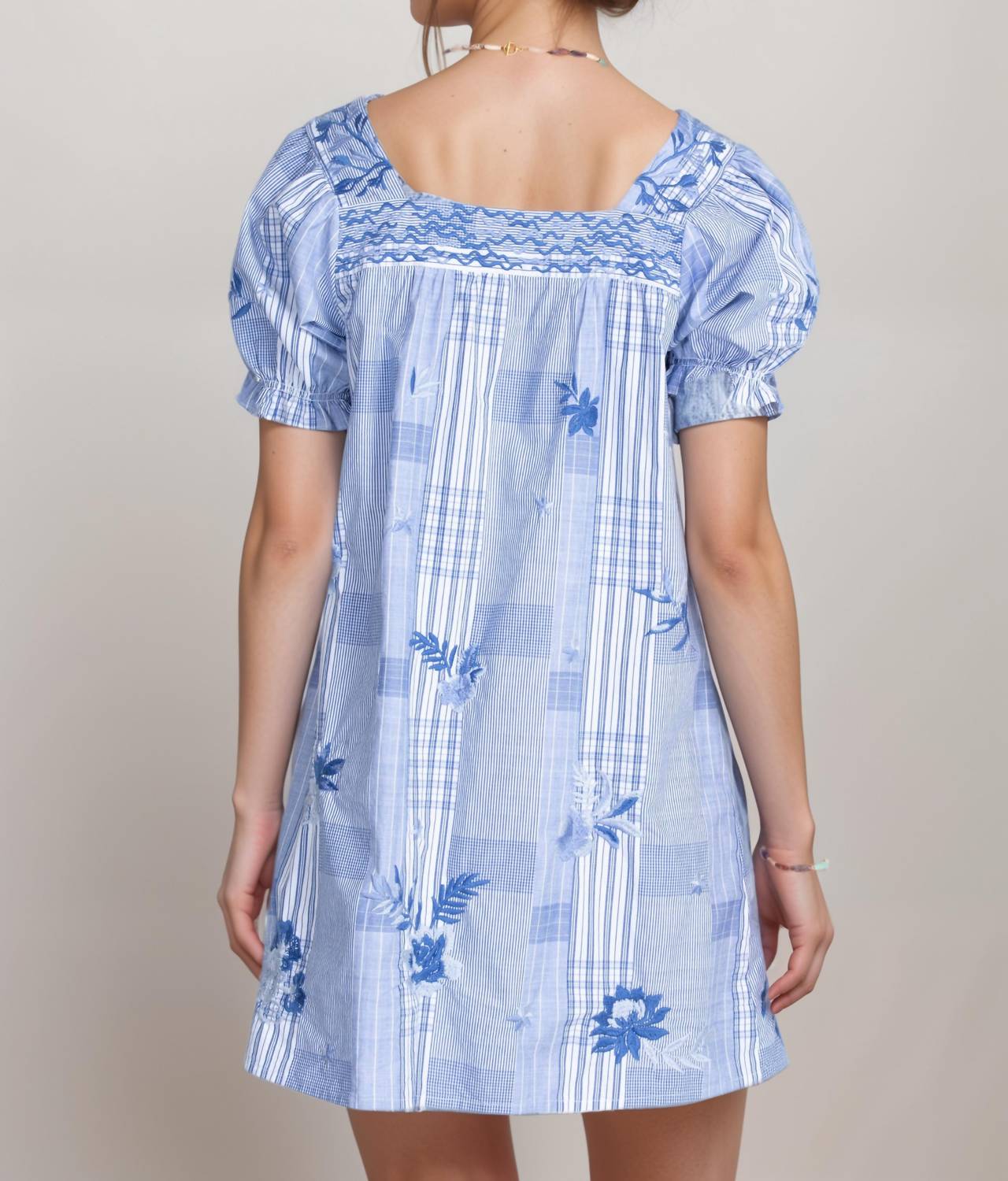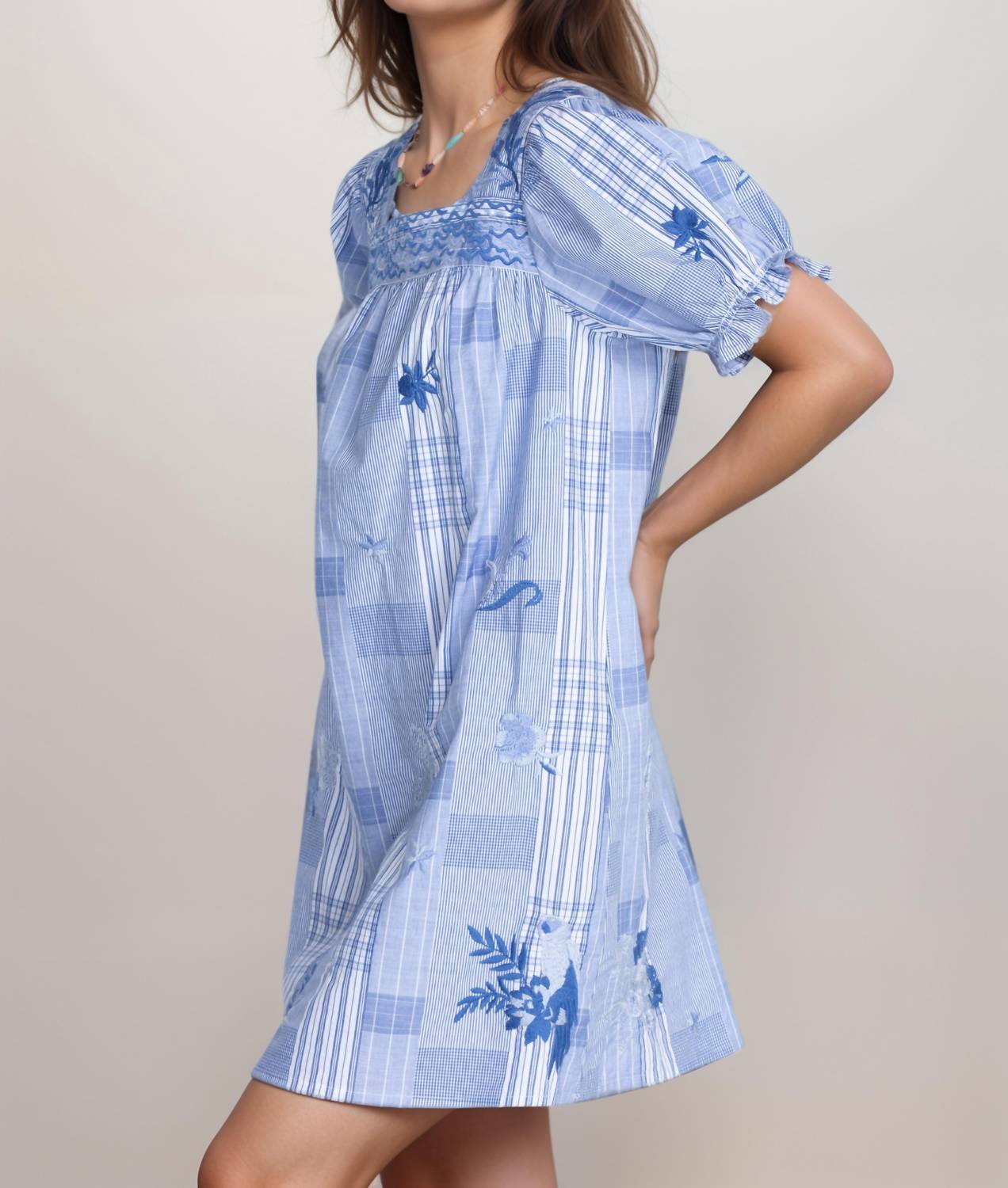 Introducing the Marbella Square Neck Park Dress by Johnny Was, a staple for your summer collection. This multi-color mini dress boasts a sophisticated square neckline and playful embroidered frilly detailing on both the front and back. The short cuffed elastic sleeves add charm, with a pull-on closure for easy wear. Crafted entirely from 100% cotton, it is easy to care for with machine wash cold and tumble dry low instructions.