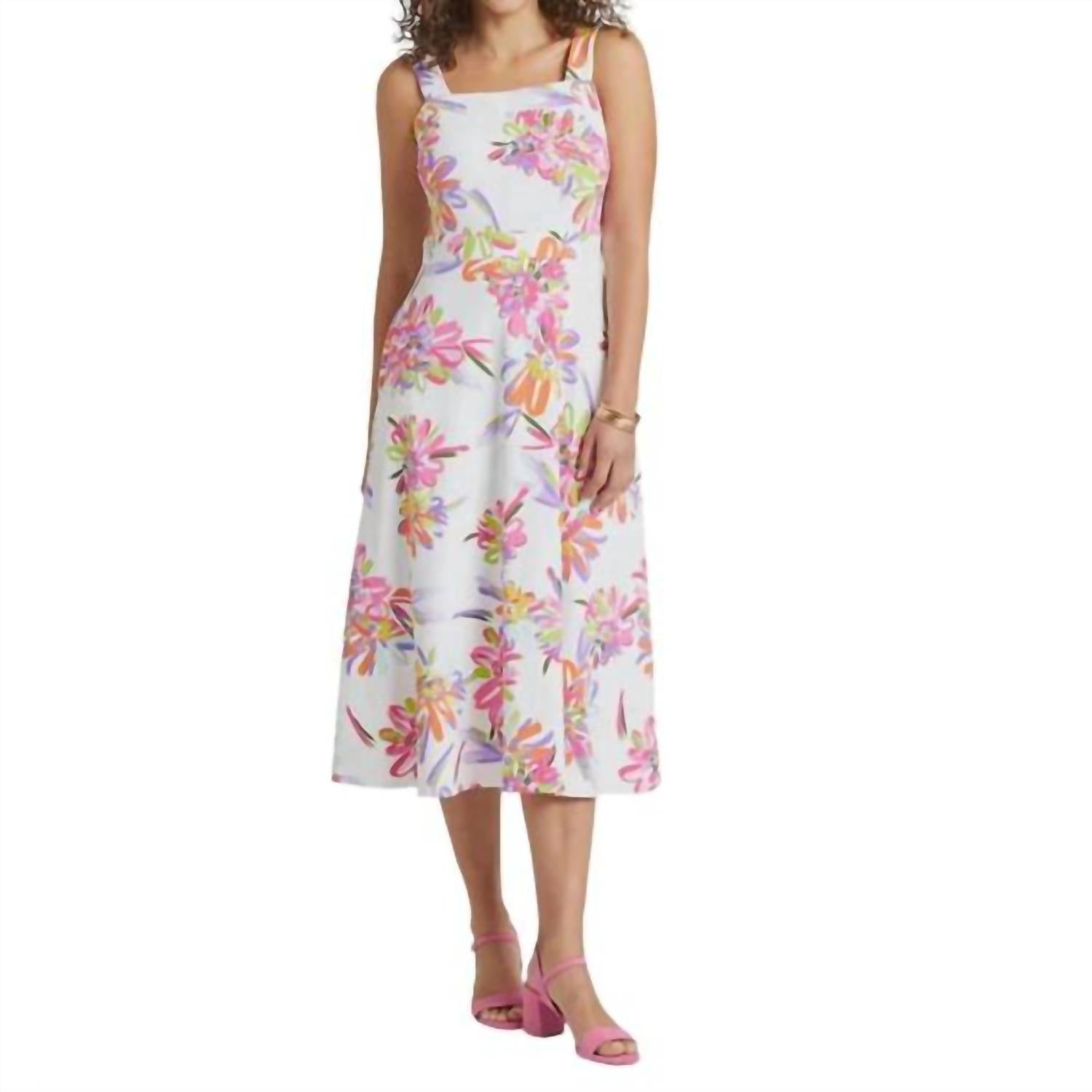 This Kaia Midi Dress features an A-line silhouette, squareneck, and a versatile floral pattern. Made from Nylon/Spandex, it has side slit pockets and a back zip closure for ease and comfort. Crafted in the U.S.A., it offers effortless style and easy care, perfect for summer days and nights.