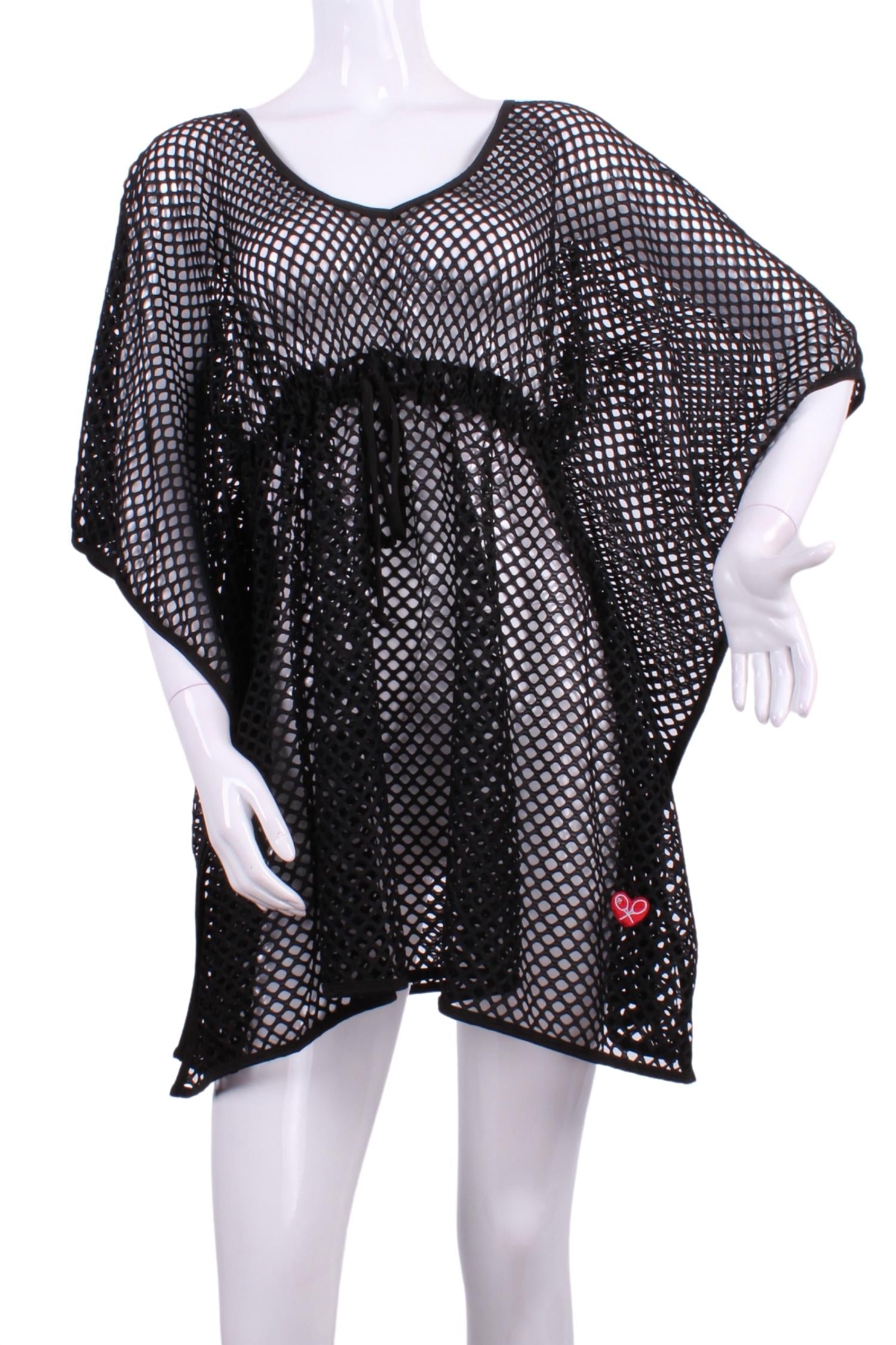 The perfect mini dress for those warmer months. Introducing the Women's Cleo Sneakers To Flip Flops Tennis Dress by Love Love Tennis, a versatile athleisure piece perfect for game day or beach outings. This mini-length dress comes in stylish Black Fine Mesh and features short sleeves with a scoop neckline. Crafted from a textured fabric, it is designed with a signature "dry ball" net back pocket to hold two tennis balls, ensuring functionality on the court. Closure: Pull on. Care: Machine wash and line dry. Sizes range from XS (34"-36" bust) to M (38"-40" bust) and are made to order.