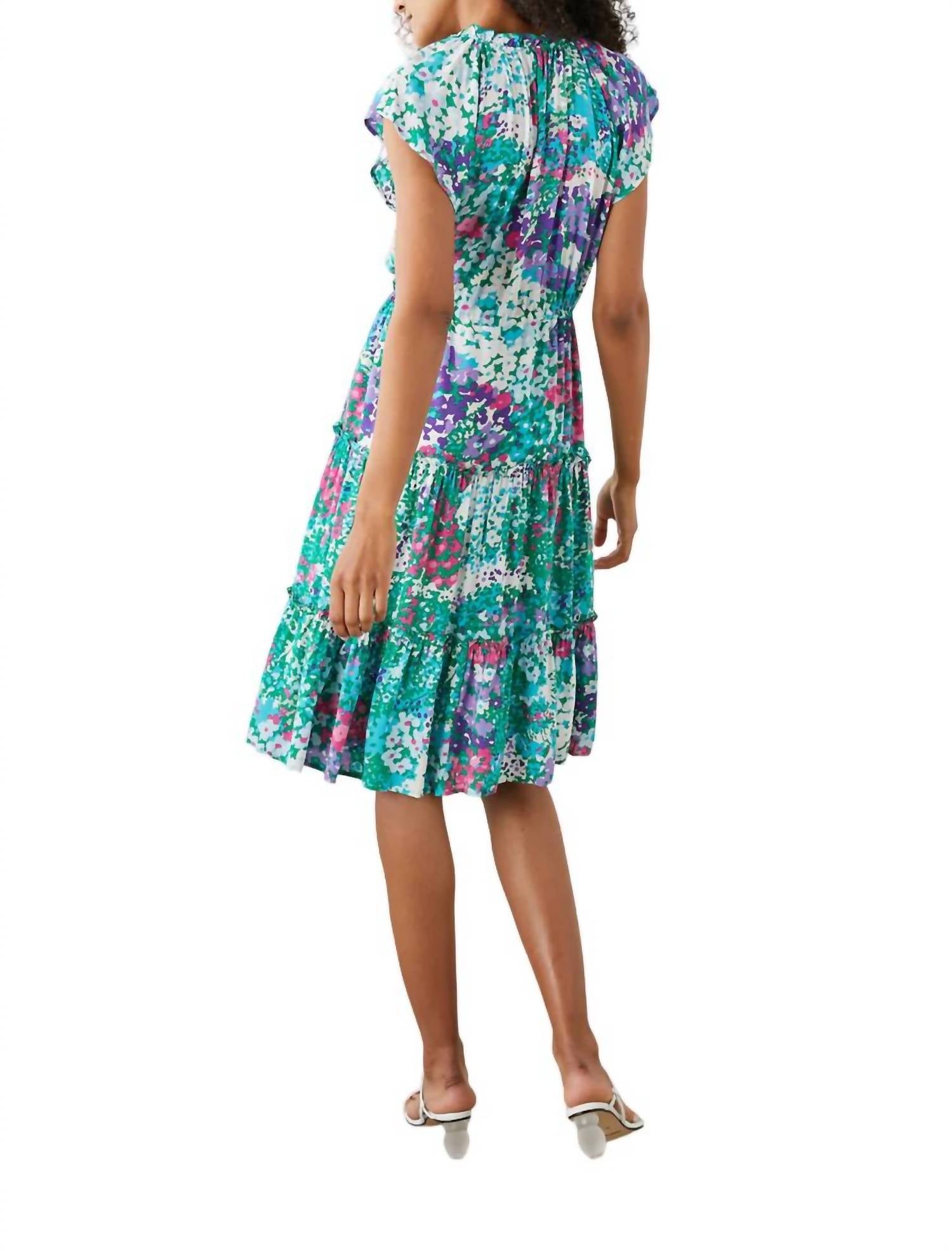 The kind of easy and flattering dress you'll be reaching for all season long. Midi dress with a botanical floral print. With a chic v-neckline, flattering A-line silhouette, and horizontal pleating down the skirt. Fabric: 70% Rayon 30% Viscose. Dry clean only. True to size. Model is wearing size S. Front Body Length: 45 1/2" (Measured from Small).