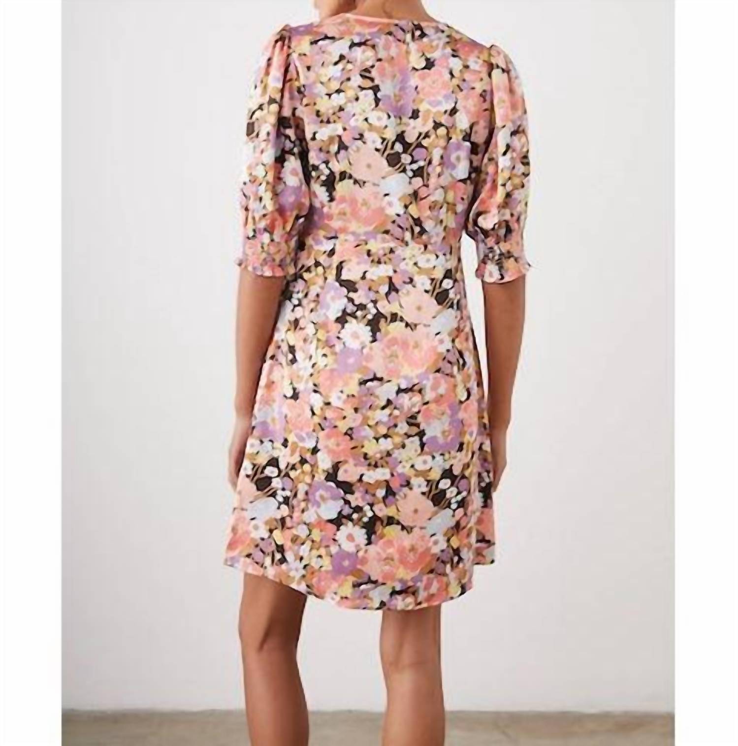 The perfect mini dress for those warmer months. Introducing the Roma Dress by Rails, a chic and versatile mini dress perfect for day-to-night transitions. This A-line silhouette features elbow-length puff sleeves and a flattering V-neckline. Crafted from a 70% Rayon | 30% Viscose Blend, it showcases a beautiful pink aster floral pattern throughout its 36-inch length. Care for your Roma Dress with a hand wash to maintain its lightweight, crepe texture.