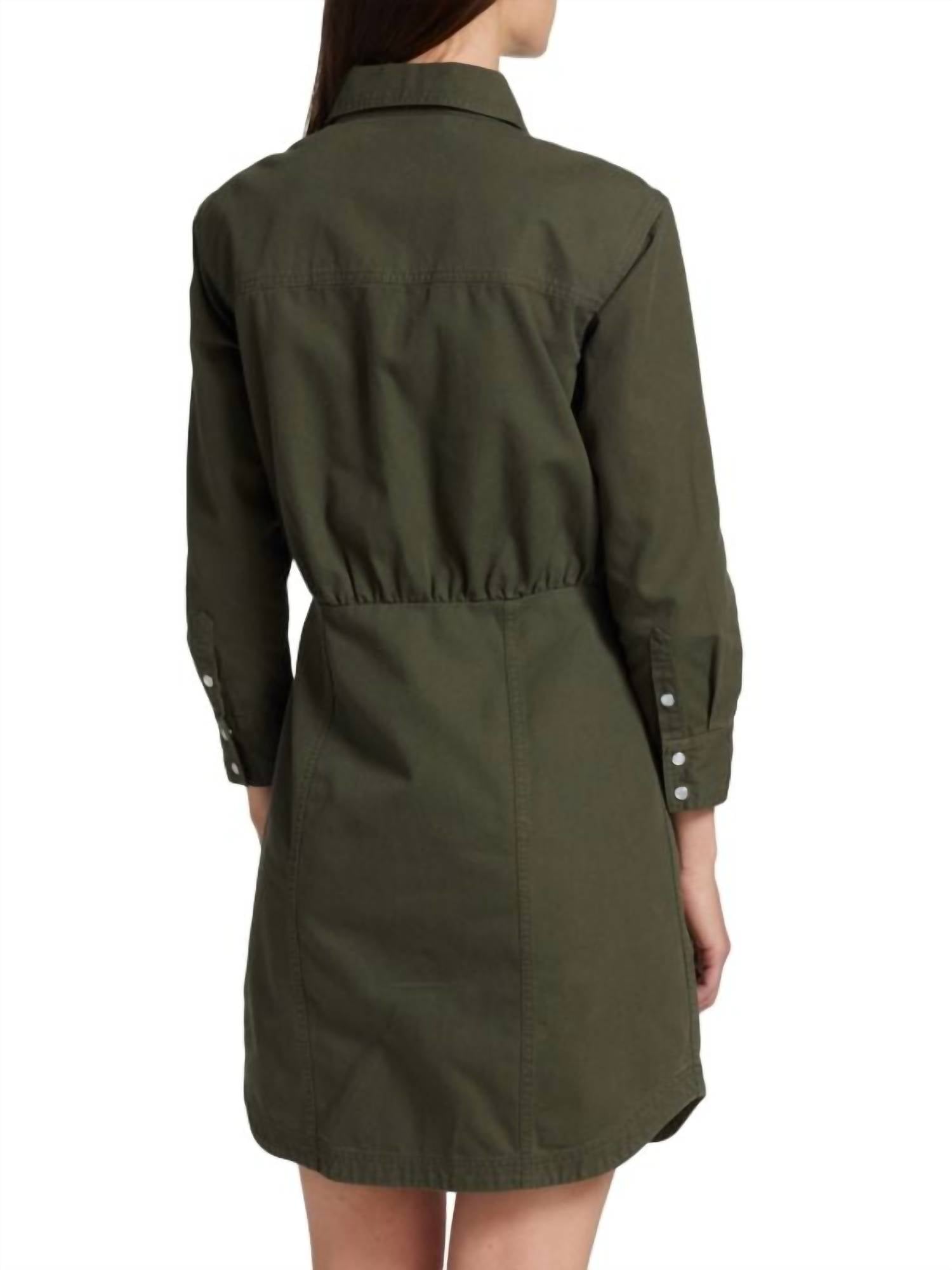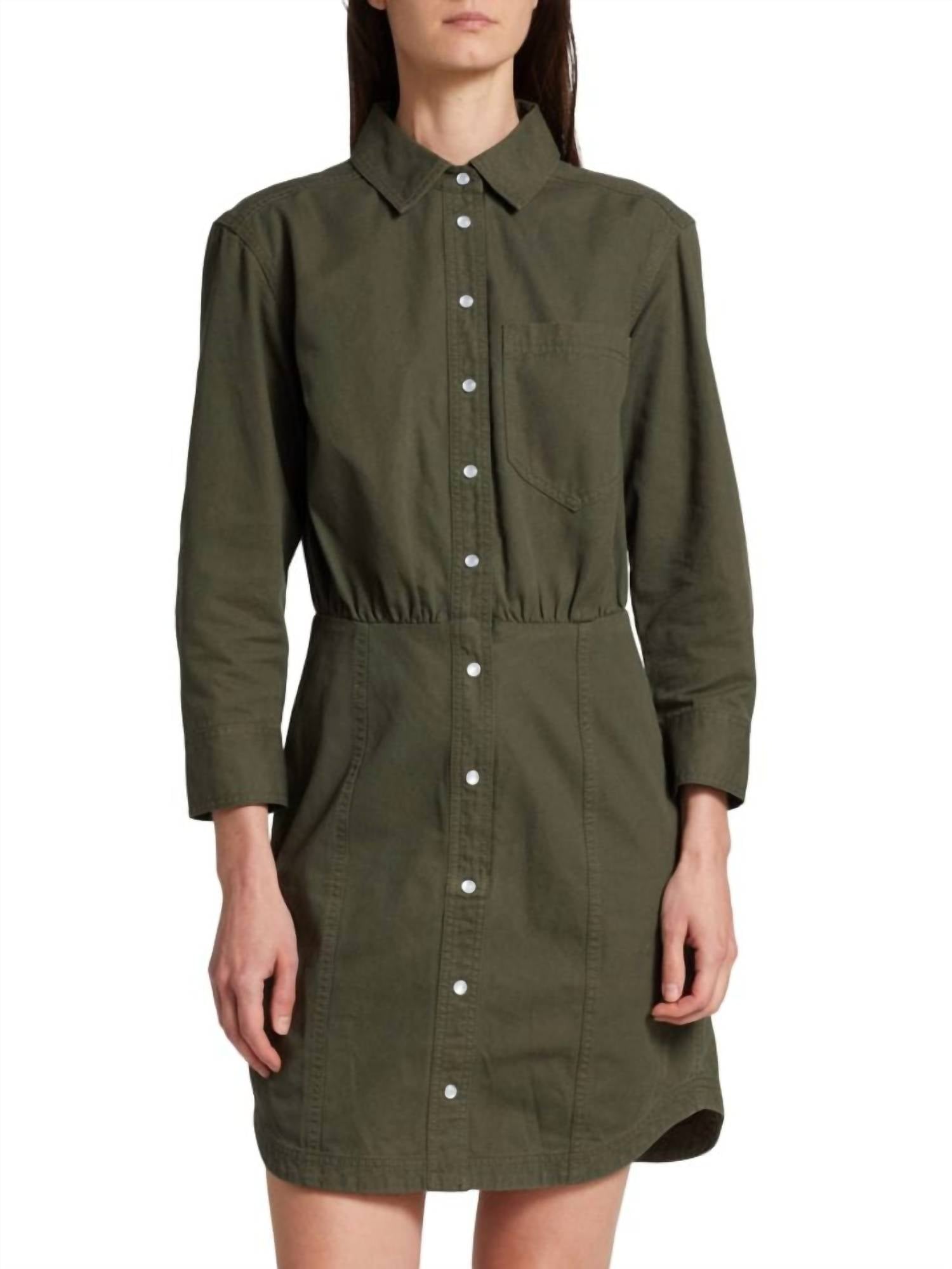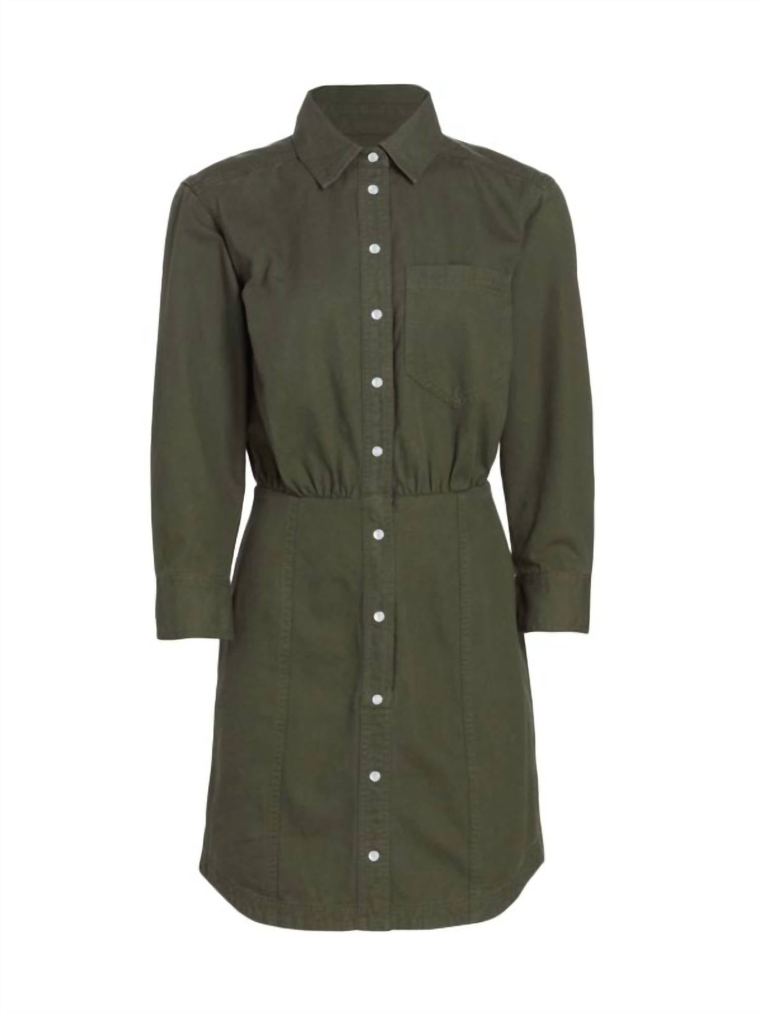 A short and breezy dress for those warmer days. Experience timeless style with Veronica Beard's Keston Twill Mini-shirtdress in Army Green, perfect for your next holiday party. This mini dress features long sleeves and is crafted from 100% cotton for a comfortable fit. Made with shirt-inspired detailing, it includes a flattering 36.35" garment length and a stylish point collar. Closure: Button front closure. Care instructions: Dry clean only. Imported quality and attention to detail make this dress a standout choice.