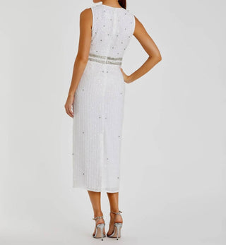 Mac Duggal - Sleeveless High Neck Beaded Midi Sheath Dress