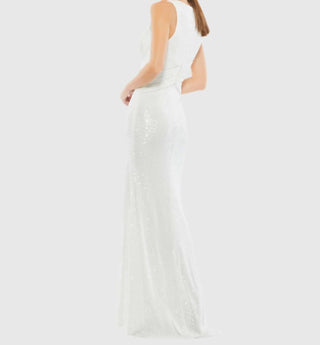 Mac Duggal - V-neck Sequin Wrap Waist Gown