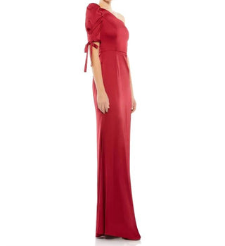 Ieena For Mac Duggal - Satin One Shoulder Puff Sleeve Trumpet Gown