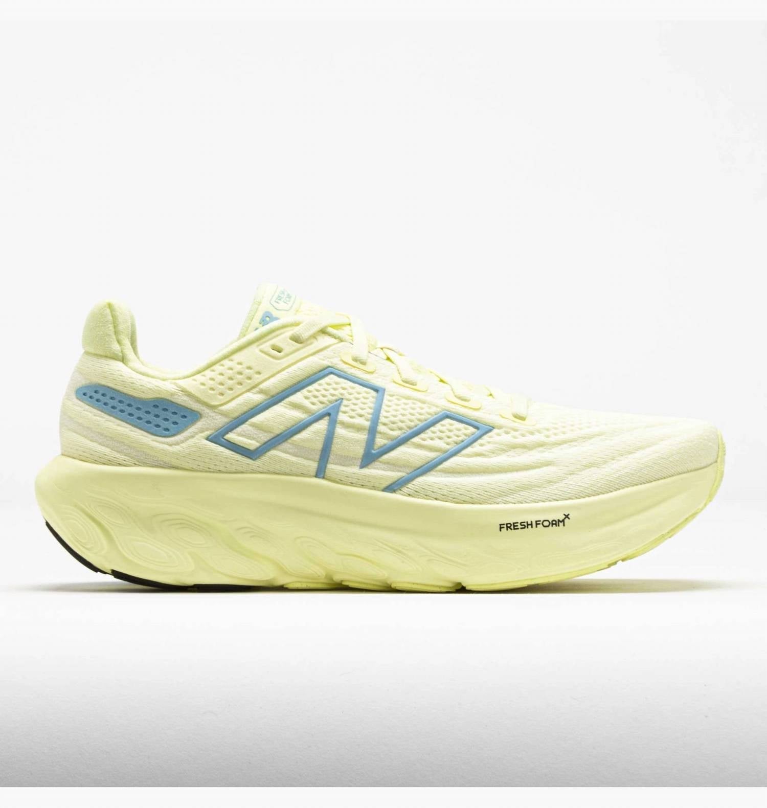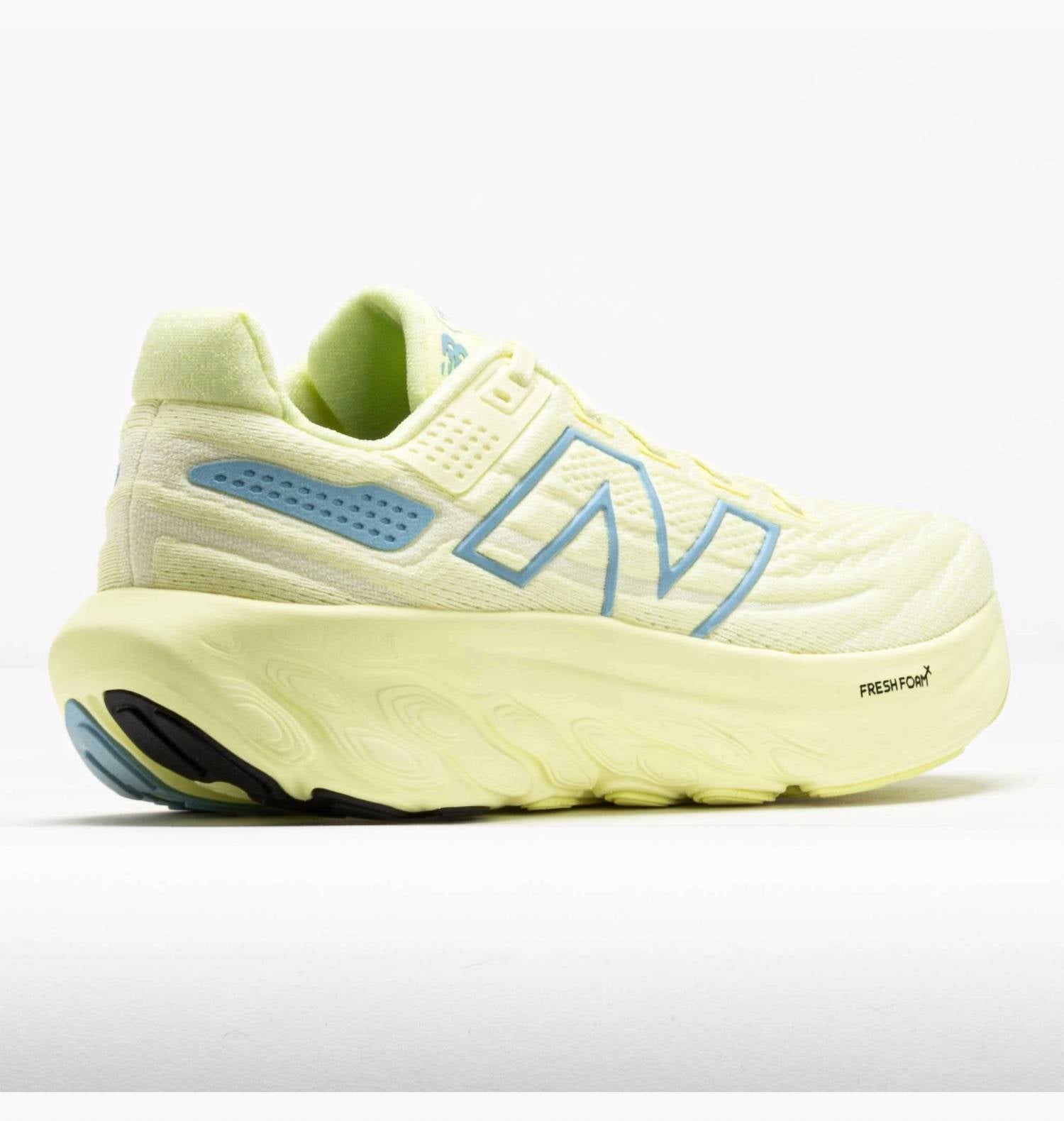Introducing the New Balance Men's Fresh Foam X 1080v13 Running Shoes, crafted for ultimate comfort and performance in Limelight/Chrome Blue/Silver Metallic. The Fresh Foam X midsole offers advanced cushioning and a soft ride, while the HypoKnit upper provides adaptive support and flexibility. Designed in a medium width with a secure bootie construction for a snug fit, these shoes are perfect for fitness and workout occasions. Featuring a round toe shape and sustainable materials, these athleisure sneakers are ideal for the eco-conscious runner.