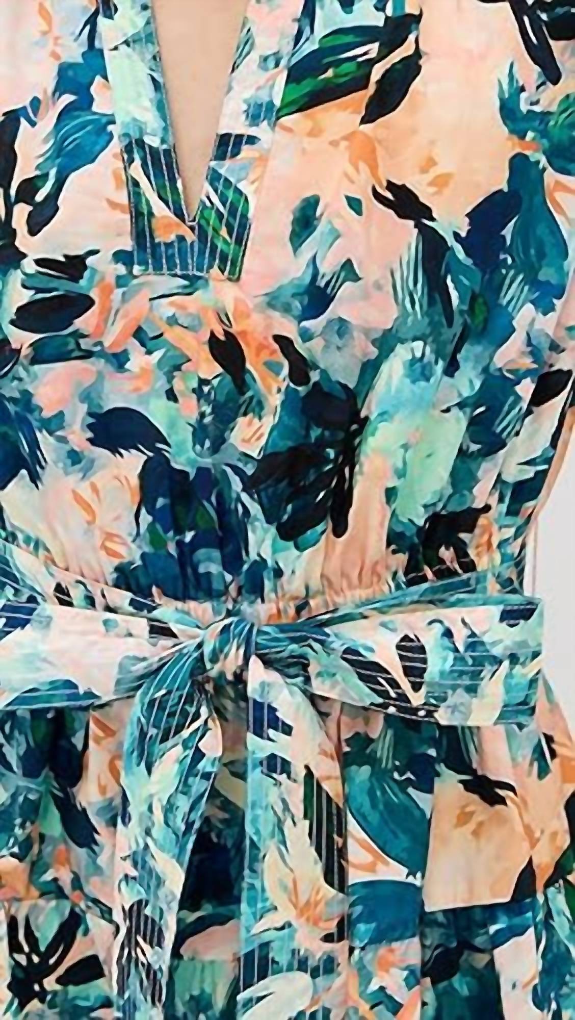 Presenting the Ottilie Midi Dress by Ulla Johnson, a stunning addition to your wardrobe. This women’s dress, featuring vibrant floral designs in delphinium, is crafted from 100% cotton. Designed with short puff sleeves, an elastic waistband, and a removable sash, it offers both style and functionality with practical side pockets. The dress has a V-neck and tie closure, perfect for embracing the Boho Chic trend this spring.