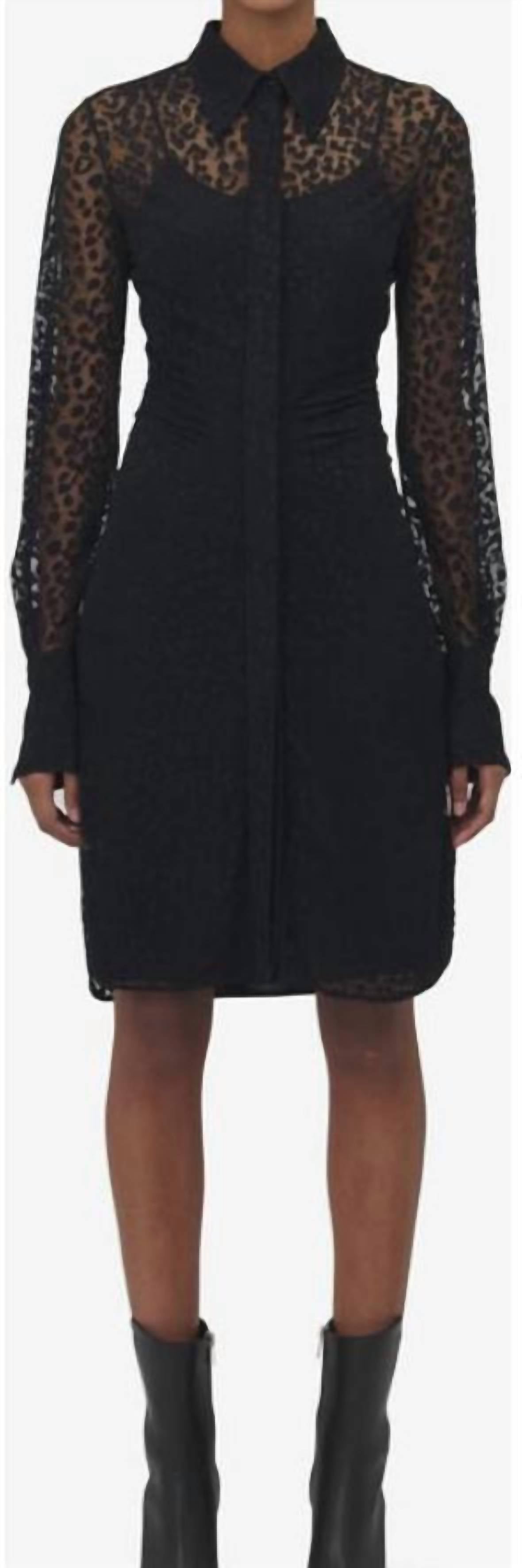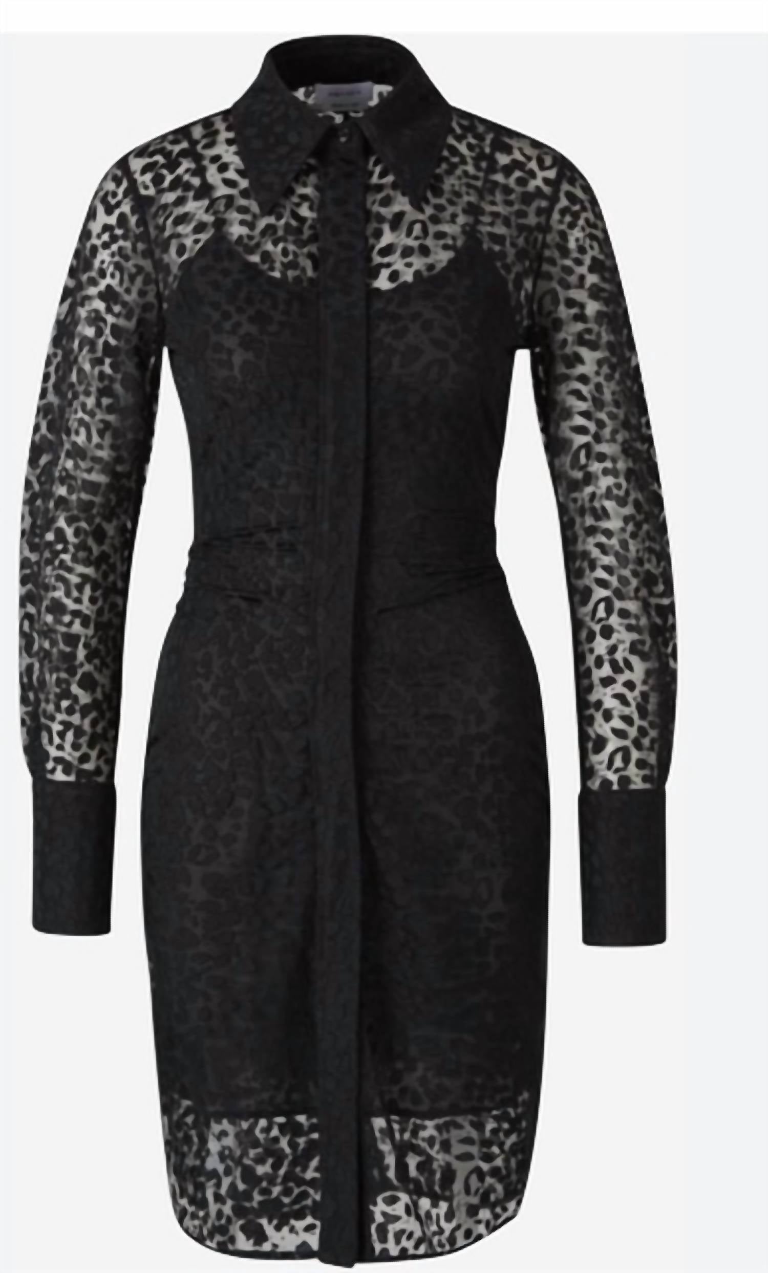 The Leopard Devoré Jersey Day Dress by Alexander McQueen combines daring style with luxurious comfort. Crafted with long sleeves, it showcases a semi-sheer stretch jersey fabric adorned with an all-over leopard print and devoré effect. Made in Italy from a viscose blend composition of 70% Viscose and 30% Polyamide, this thigh-length dress features a concealed front button fastening and is accompanied by a detachable slip dress. Care instructions dictate dry cleaning only, ensuring the garment's exquisite design is preserved.