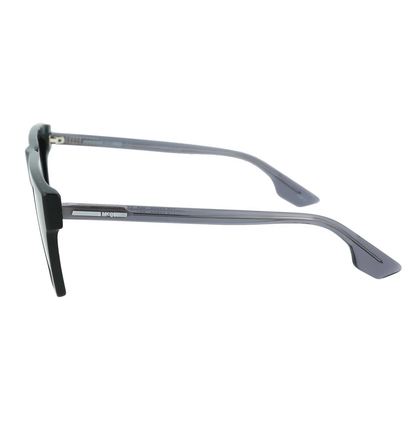 Experience luxury with the Men's Mq0073s Sunglasses by Alexander McQueen in sleek black. These square sunglasses boast a lens width of 54mm, a bridge size of 17mm, and a temple length of 150mm, ensuring a comfortable and tailored fit. Constructed with durable plastic frames and featuring clear lenses, they are a modern essential for any stylish wardrobe.