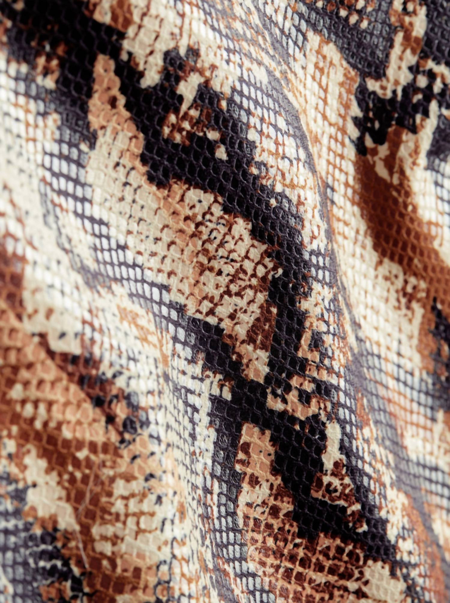 The kind of easy and flattering dress you'll be reaching for all season long. Turn heads with the Clyde Snake Aline Fitted Shift Dress by alice + olivia in a striking Camel/black Snake pattern. This sleeveless mini dress is crafted from a vegan snakeskin material with a composition of 95% polyester and 5% elastane, offering a fitted silhouette in a shift style. Measuring 33 inches in length, it is designed with a practical back zipper closure for ease of wear. Care for this animal pattern piece by dry-cleaning only.