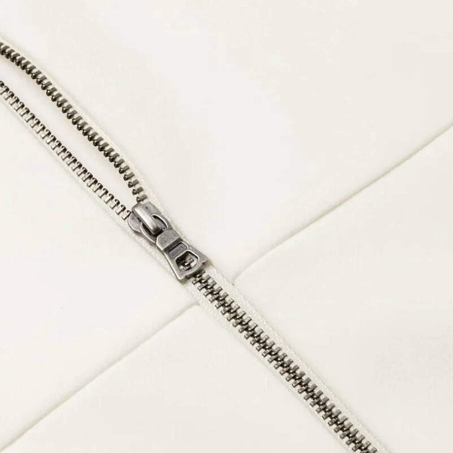 The kind of easy and flattering dress you'll be reaching for all season long. Introducing the Julie Zip Mini Dress by alice + olivia, a stunning piece for women in classic white. This sleeveless dress features a round neck and a chic side zip slit, emphasizing an understated edge with its utilitarian detail. Crafted from a blend of polyester, viscose, and polyurethane, this mini dress offers a flattering A-line silhouette and a convenient back zip closure. Care instructions recommend dry cleaning to maintain its crisp, solid appearance.