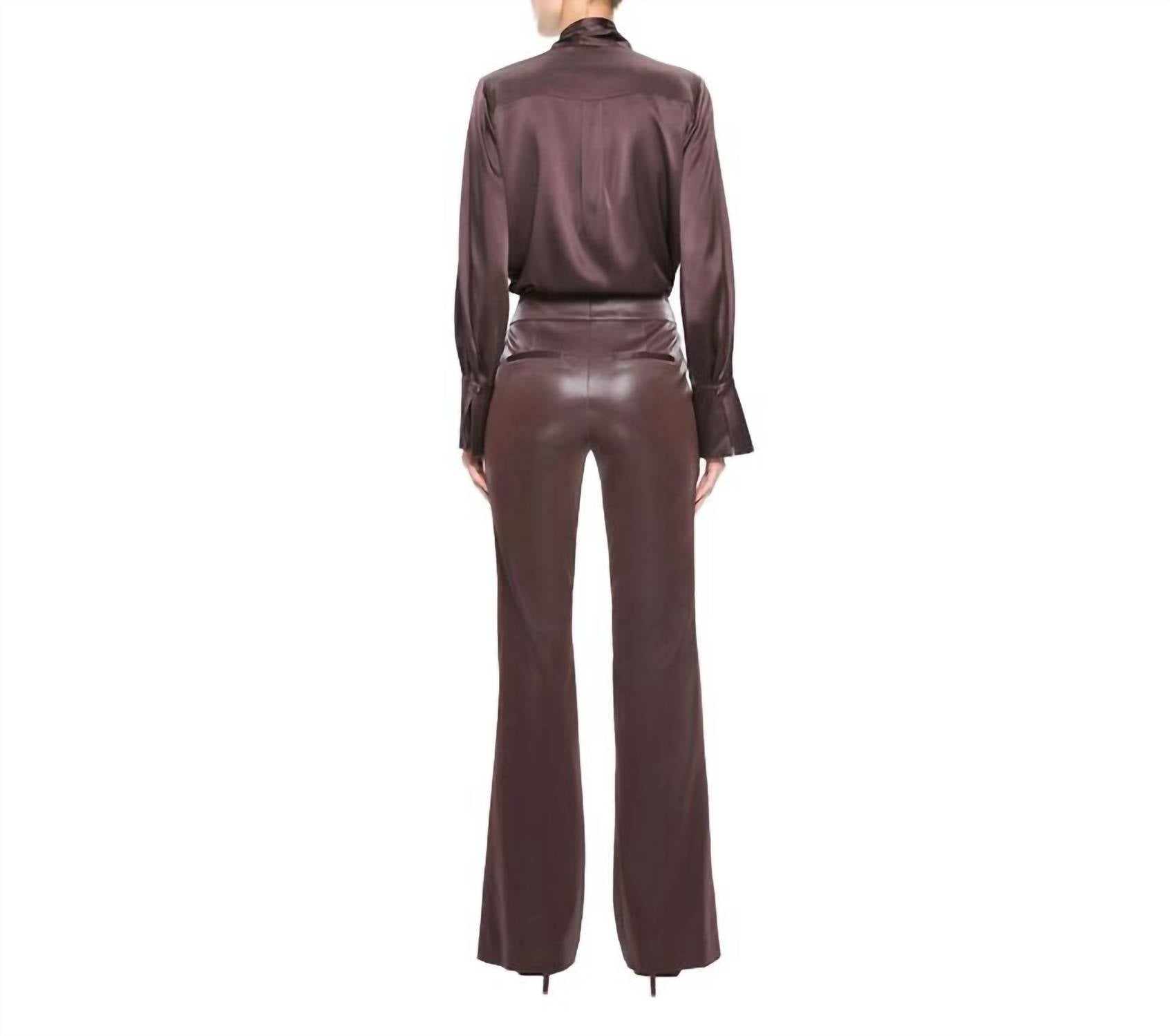 A timeless blouse that will never go out of style. The Lloyd Slit Sleeve Blouse by Alice + Olivia is the epitome of quiet luxury, perfect for spring evenings or Thanksgiving gatherings. This long sleeve women's blouse in a sophisticated espresso hue features a chic stripe pattern and a crewneck, crafted from a seductive silk blend. Designed with a practical button closure for effortless wear. For garment care, please dry clean only.