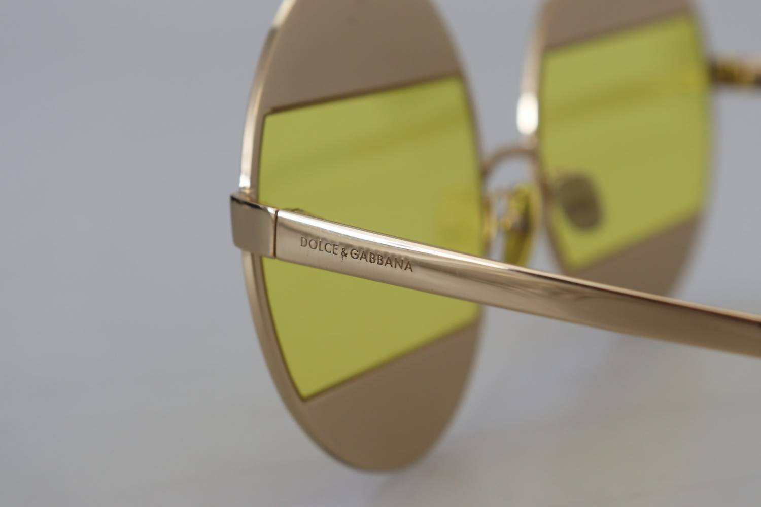 Upgrade your eyewear collection with these stunning sunglasses, meticulously designed to offer a perfect balance of style and functionality. Protect your eyes in style! Elevate your accessory game with these exquisite Dolce & Gabbana Women's Oval-Shaped Sunglasses in a luxurious gold finish. Crafted from 100% metal, these sunglasses are adorned with colored crystals for a touch of glamour. Featuring yellow lenses that offer 100% UV protection, they are the perfect blend of style and functionality. Made in Italy, these sunglasses promise to add sophistication to your everyday look.