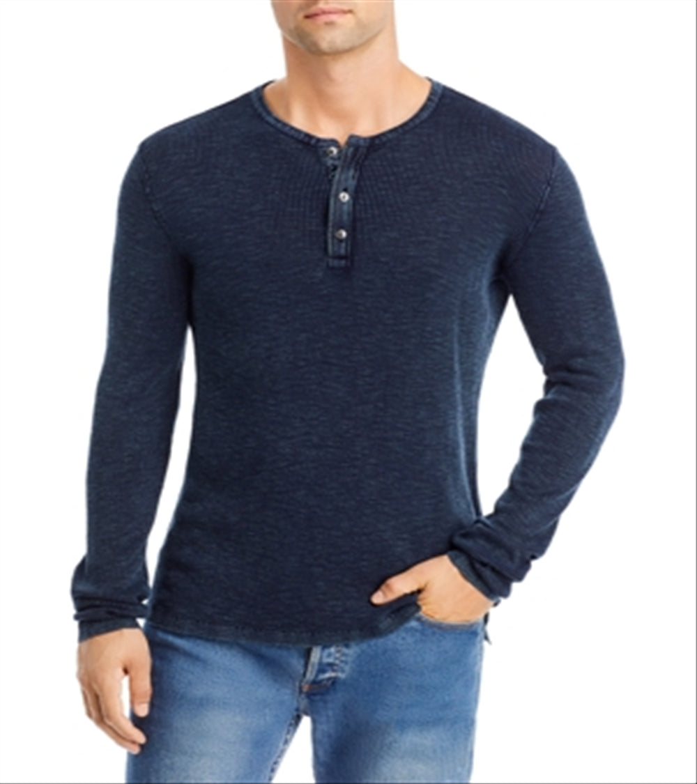 John Varvatos Men's Memphis Waffle Henley T-Shirt Blue Size X-Large