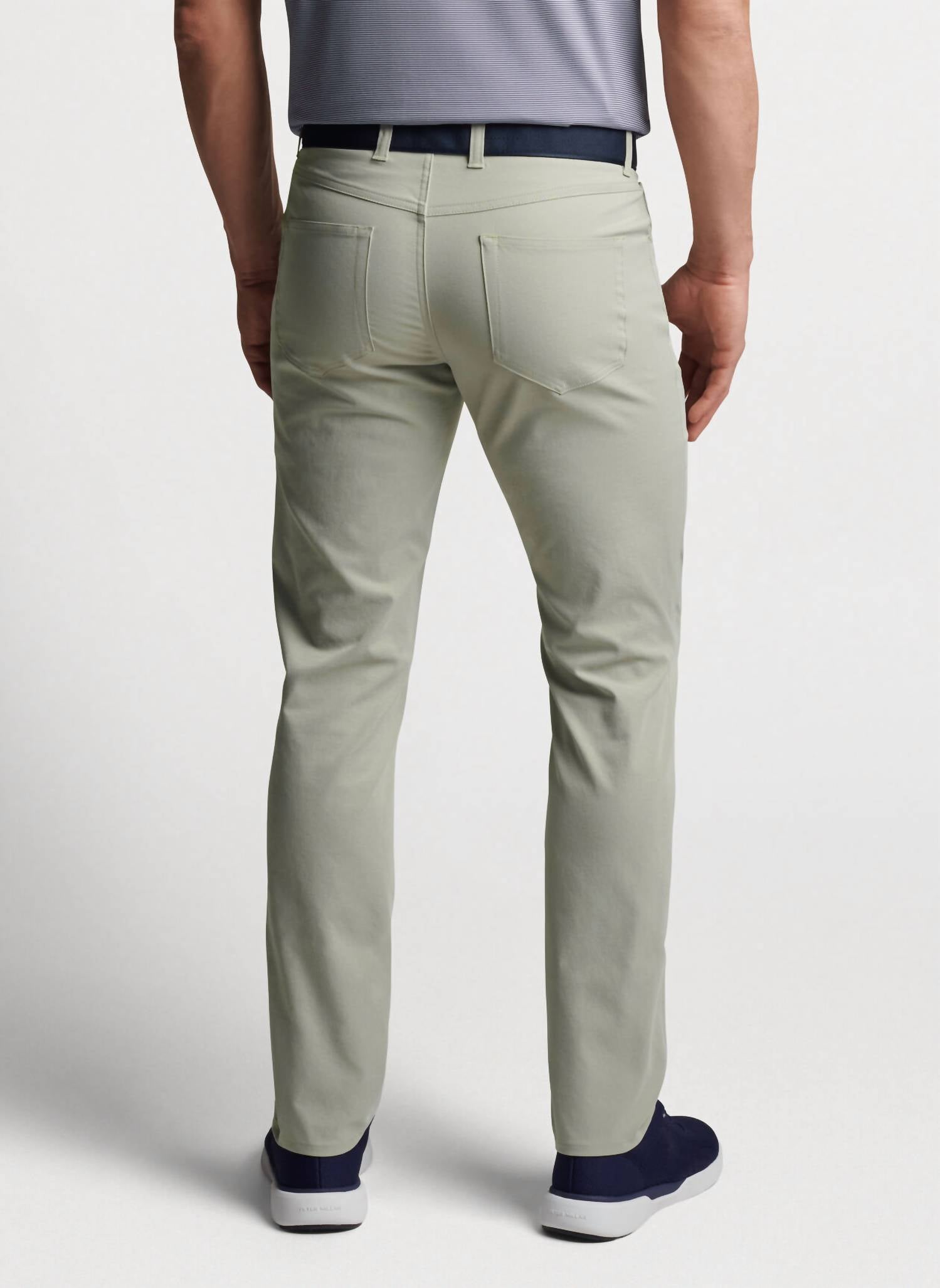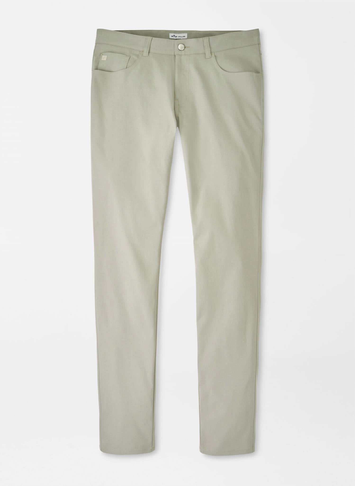 Classic Fit. Two-way stretch, moisture-wicking and easy-care. Soft hand-feel. Five-pocket design. Machine wash cold.