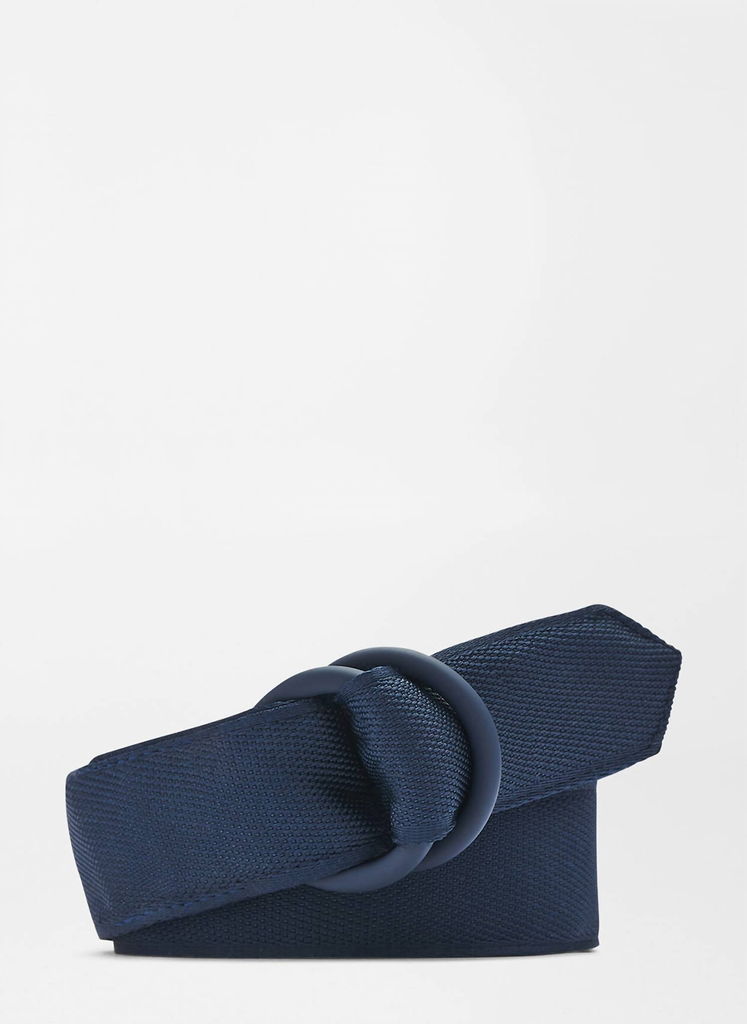 Introducing the Men's Performance O-ring Belt by PETER MILLAR, a sophisticated accessory in timeless navy designed for modern aesthetics. Crafted from a blend of 90% polyester and 10% elastane, this belt provides both flexibility and durability. Featuring a sleek tonal design, it adjusts to size with a rubberized enamel metal O-ring closure, ensuring a secure fit. Expertly crafted in Italy, this belt elevates any ensemble with its refined detail.