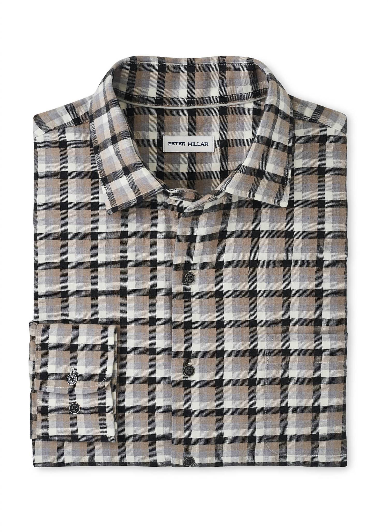 Elevate your casual wardrobe with the PETER MILLAR North Bay Cotton Shirt, designed in a stylish plaid & check pattern and dark sand color. This classic fit shirt features long sleeves, a spread collar, and practical button closure, ensuring a polished look. Crafted from 100% cotton, this imported garment is both comfortable and durable. Care for your shirt with ease, machine wash cold with like colors and lay flat to dry or opt for dry cleaning.