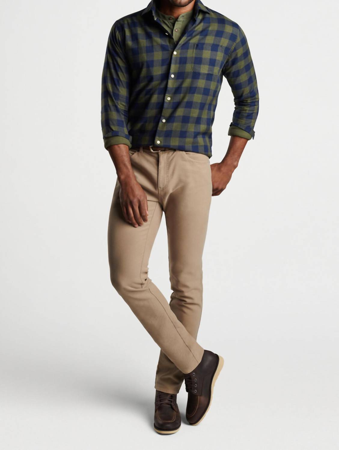 This classic sport shirt is made from an ultra-soft and breathable cotton twill. Spread collar, French placket and double-button barrel cuffs. Men's 100% cotton sport shirt. Classic Fit