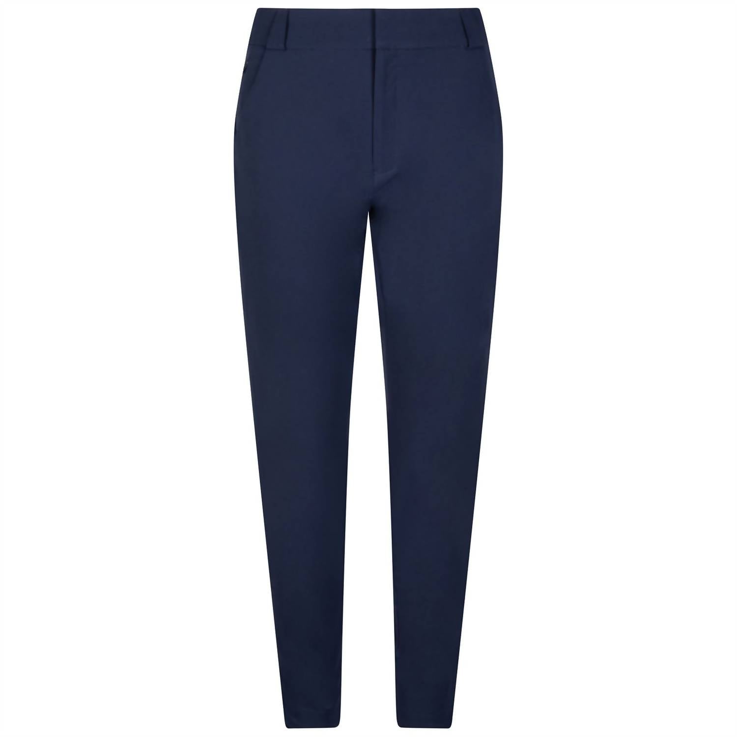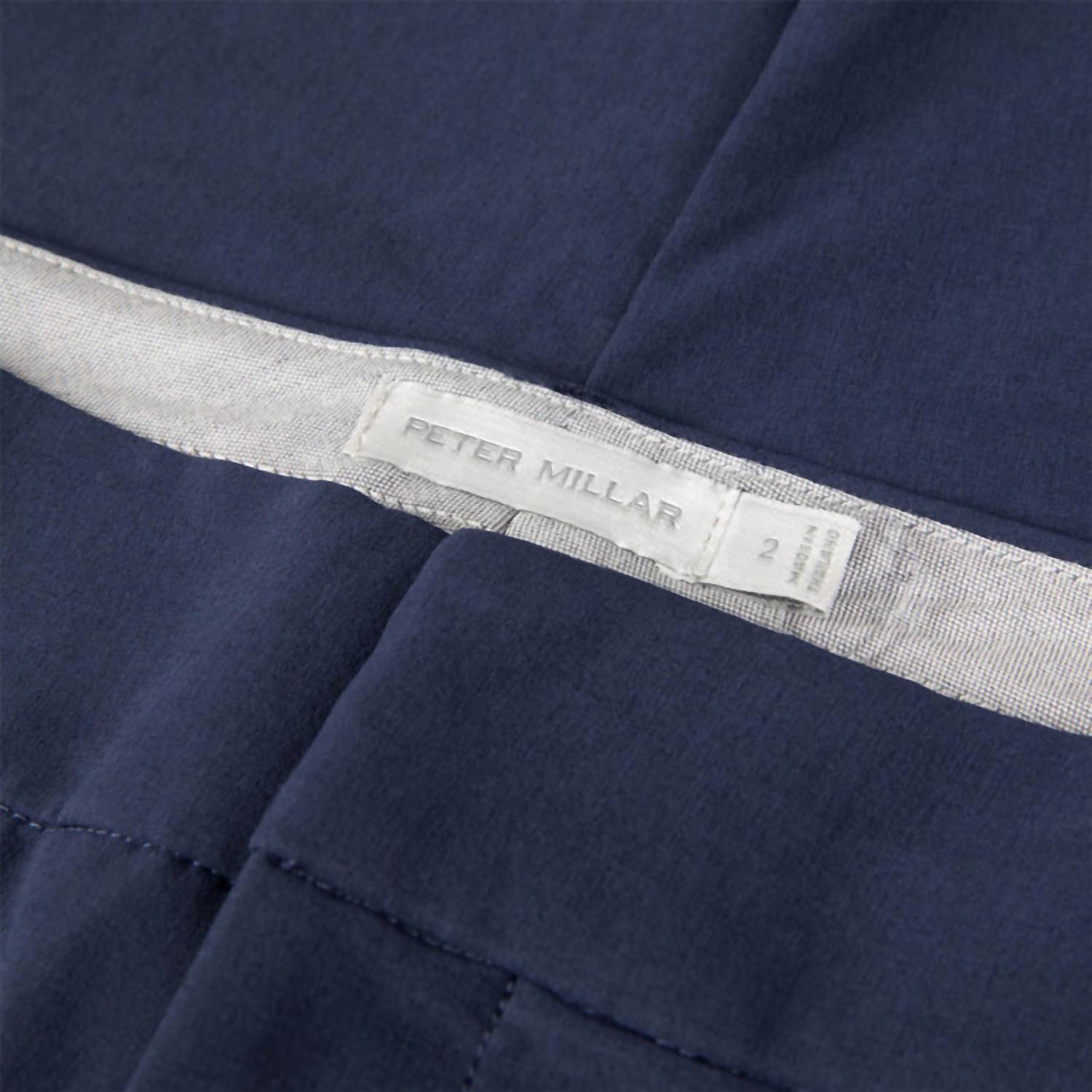 Stay on-trend and showcase your impeccable taste with these adaptable and stylish cropped pants. The perfect length to wear with your favorite mules. You'll love the fit! Elevate your wardrobe with the Women's Surge Performance Ankle Pant by PETER MILLAR, crafted from lightweight recycled polyester and spandex, delivering comfort with four-way stretch and moisture-wicking technology. These navy trousers feature a slightly tapered leg and a stylish petal hem, perfect for transitioning from the office to leisure activities. Designed for practicality, they are machine washable and can be tumble dried on low heat, eliminating the need for ironing or dry cleaning. The solid pattern and functional pockets enhance this modern classic for the contemporary woman.