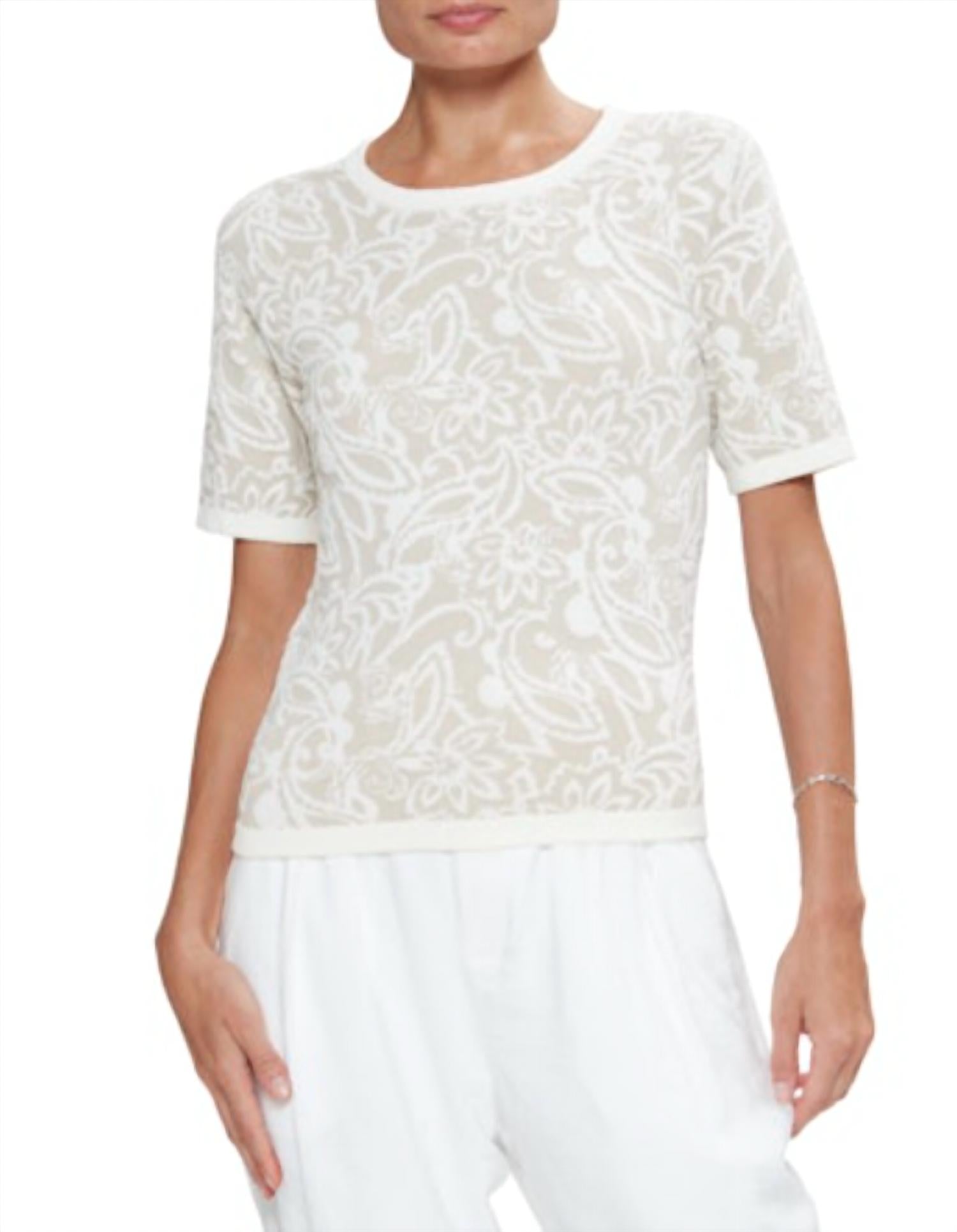 Classic meets contemporary in the Adriana. This short-sleeve, fitted top features a round scoop neck and a soft boucle knit with just the right amount of stretch. Full-length for versatile styling, it pairs effortlessly with tailored pants or relaxed denim.